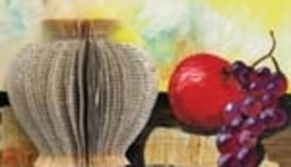 An upcycled paperback book serves as the basis for a lesson in form. Using french curves, a template of a Greek pottery form is made. Trace the template onto a book, cut the pages, and open the book to reveal a 3-D piece of paper pottery! Glue the Vase to a painted or collaged background for something truly unique.