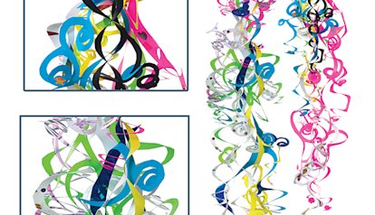 Whimsical, colorful, and much easier than one would expect, these paper creations make festive decorations for mere pennies. A simple spiral cut — a line that starts on the edge of a circle and continues to the center — is the only skill needed. No glue, no extra construction. The secret is starting with multiple conjoined circles.