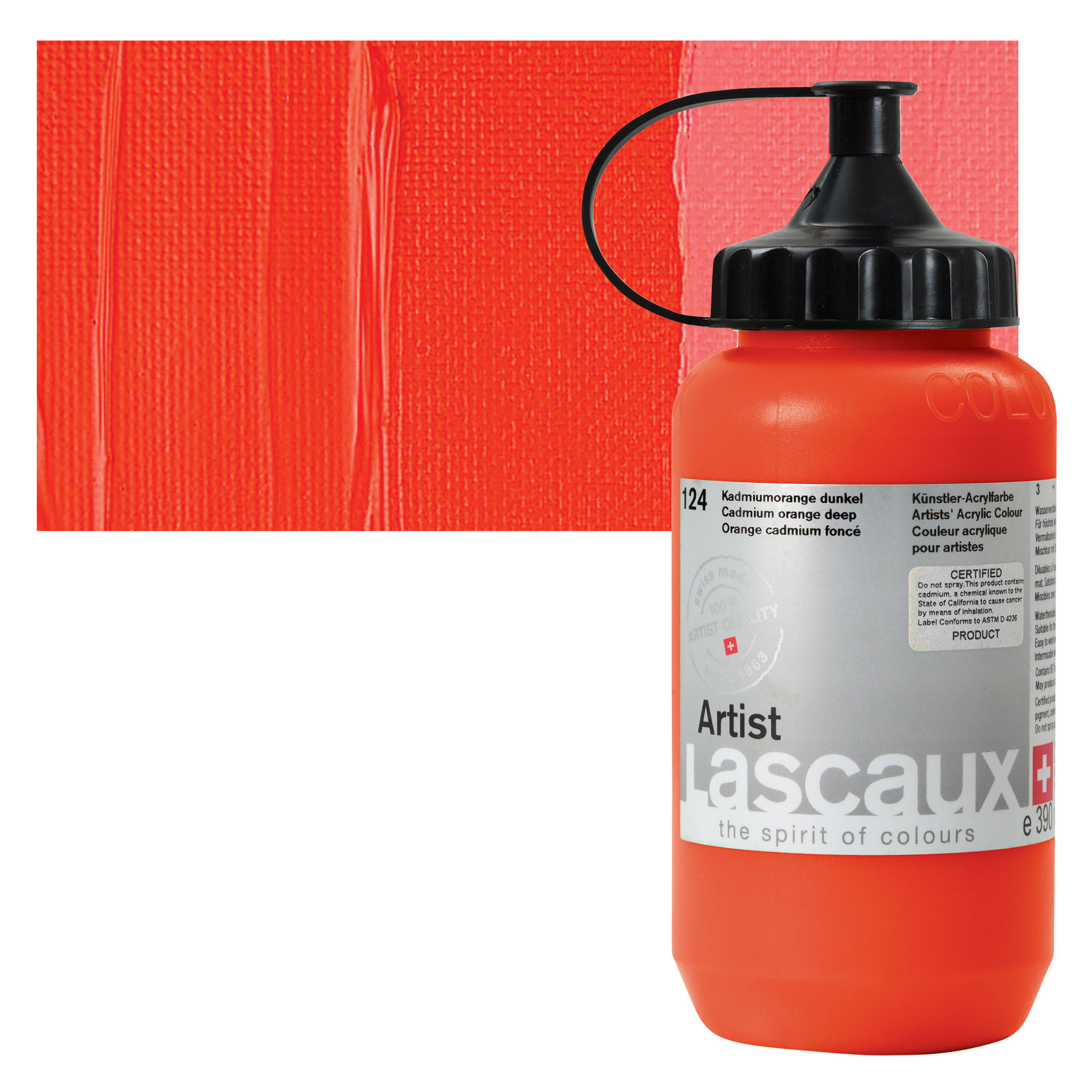 Cadmium Orange was the first true orange and was made by mixing Cadmium Yellow with Cadmium Red. It is a pure hue with excellent opacity and low toxicity compared with its predecessors. It also has very high hiding power. The greatest tinting strengths are possessed by the deeper shades. Only the highest grades contain pure Cadmium Orange without barium mixed in it. Cadmium pigments have been partially replaced by azo pigments, which are similar in lightfasness to the cadmium colors, cheaper, and non-toxic.