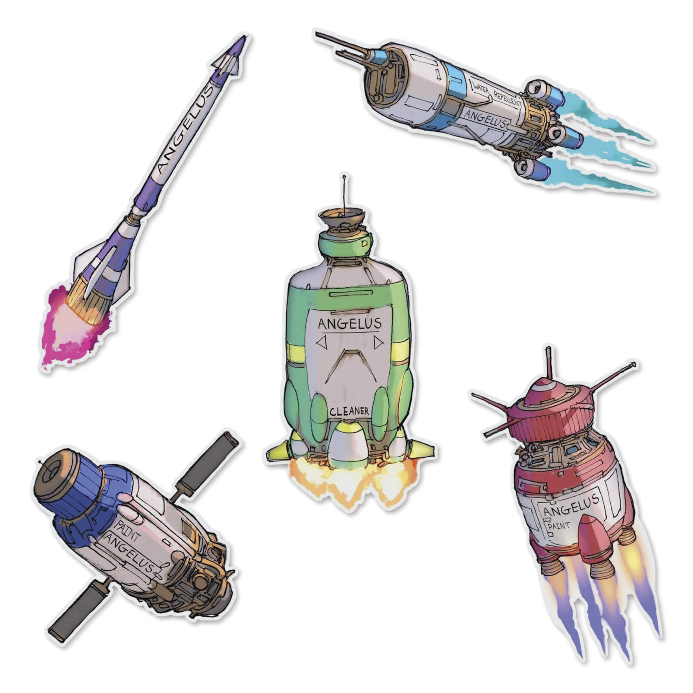 This pack includes five space-themed stickers (4”)