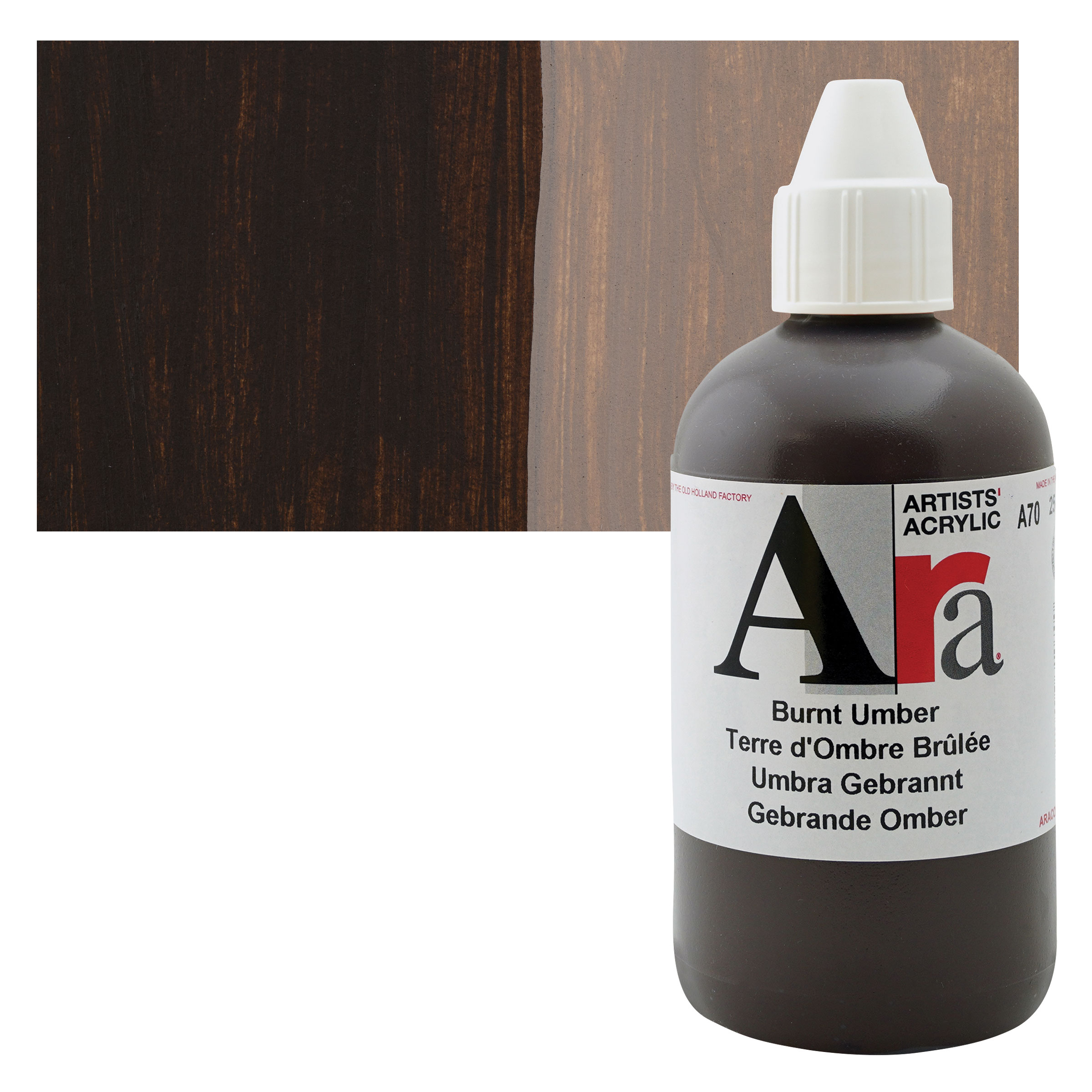 Burnt Umber is a more intense reddish brown pigment that results from heating the clay pigment Raw Umber. It has medium to excellent tinting strength and high opacity, and it is quick drying in oil form. Burnt Umber is somewhat more transparent than Raw Umber. It has excellent color properties and can create a variety of subtle, clear tints when mixed with white. It can tend towards chalkiness in dark mixes in oil form, but overall it mixes well with other colors. To create a black color in oil form, mix Burnt Umber with Phthalo Blue or Ultramarine. To achieve a similar color in watercolor form, mix it with Ultramarine or Payne's Gray.