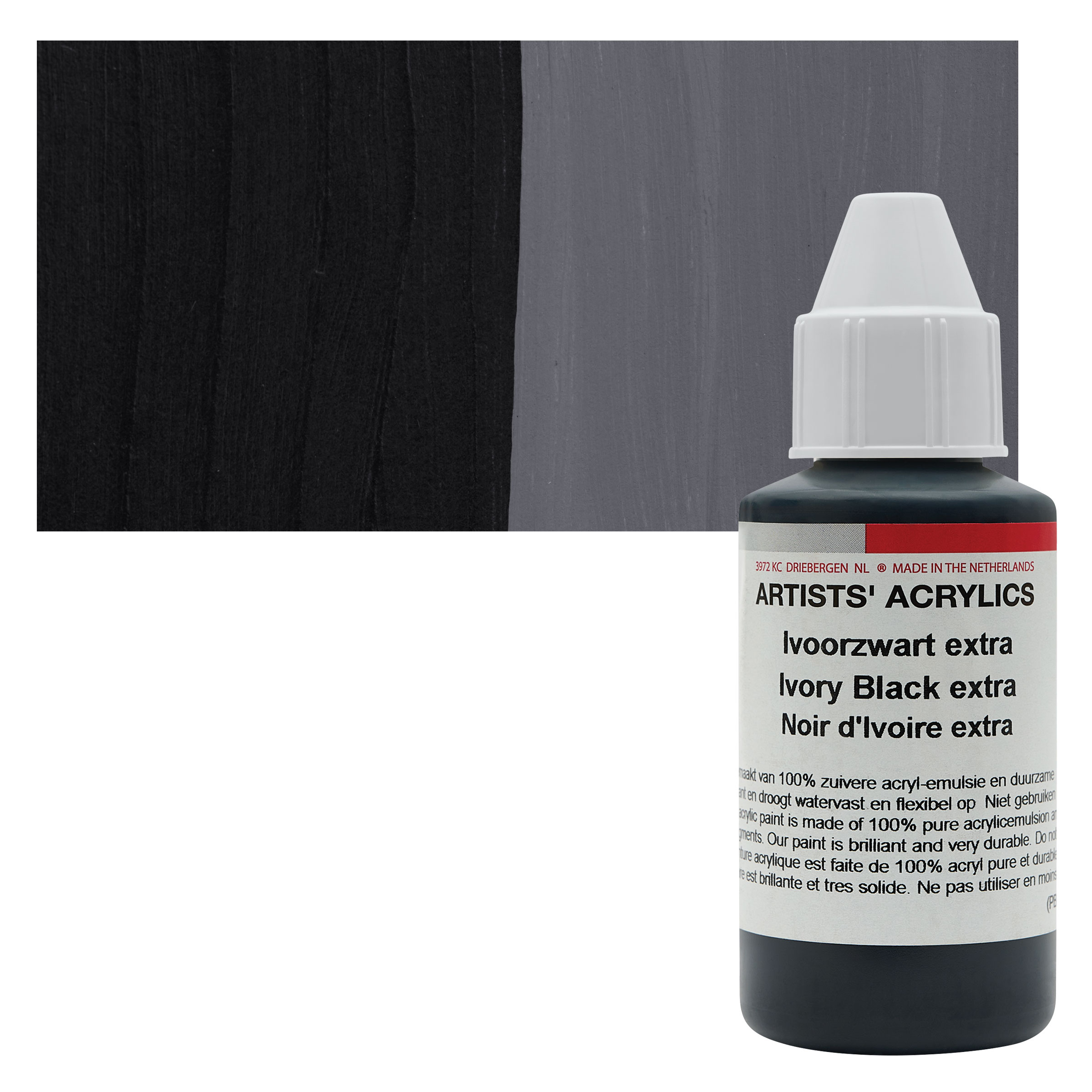Ivory Black is a cool, semi-transparent blue-black with a slight brownish undertone and average tinting strength. It mixes well with any color, and creates a range of dull greens when mixed with yellow. It has good properties for use in oil, can be slow to dry in oil form, and should never be used in underpainting or frescoing. Ivory Black is denser than Lamp Black.