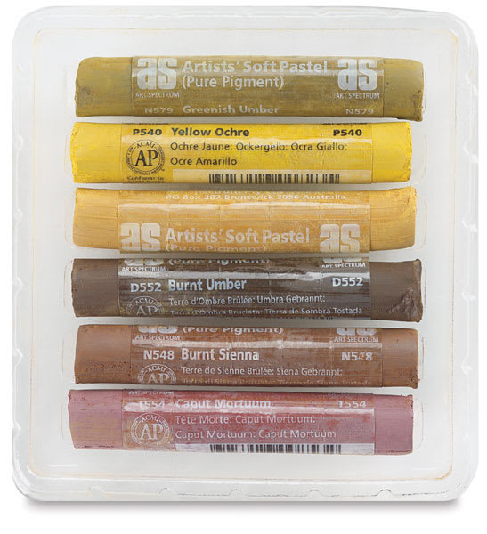 Yellow Ochre 540P, Raw Sienna 544P, Greenish Umber 549N, Caput Mortuum 554T, Burnt Sienna 548N, and Burnt Umber 552D.