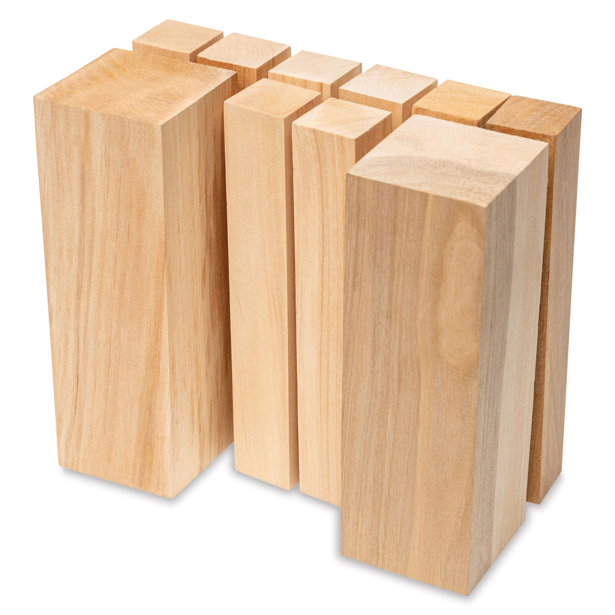 Includes two blocks measuring 1.98" x 1.98" x 5.95", and eight blocks measuring 1.02" x 1.02" x 5.95".