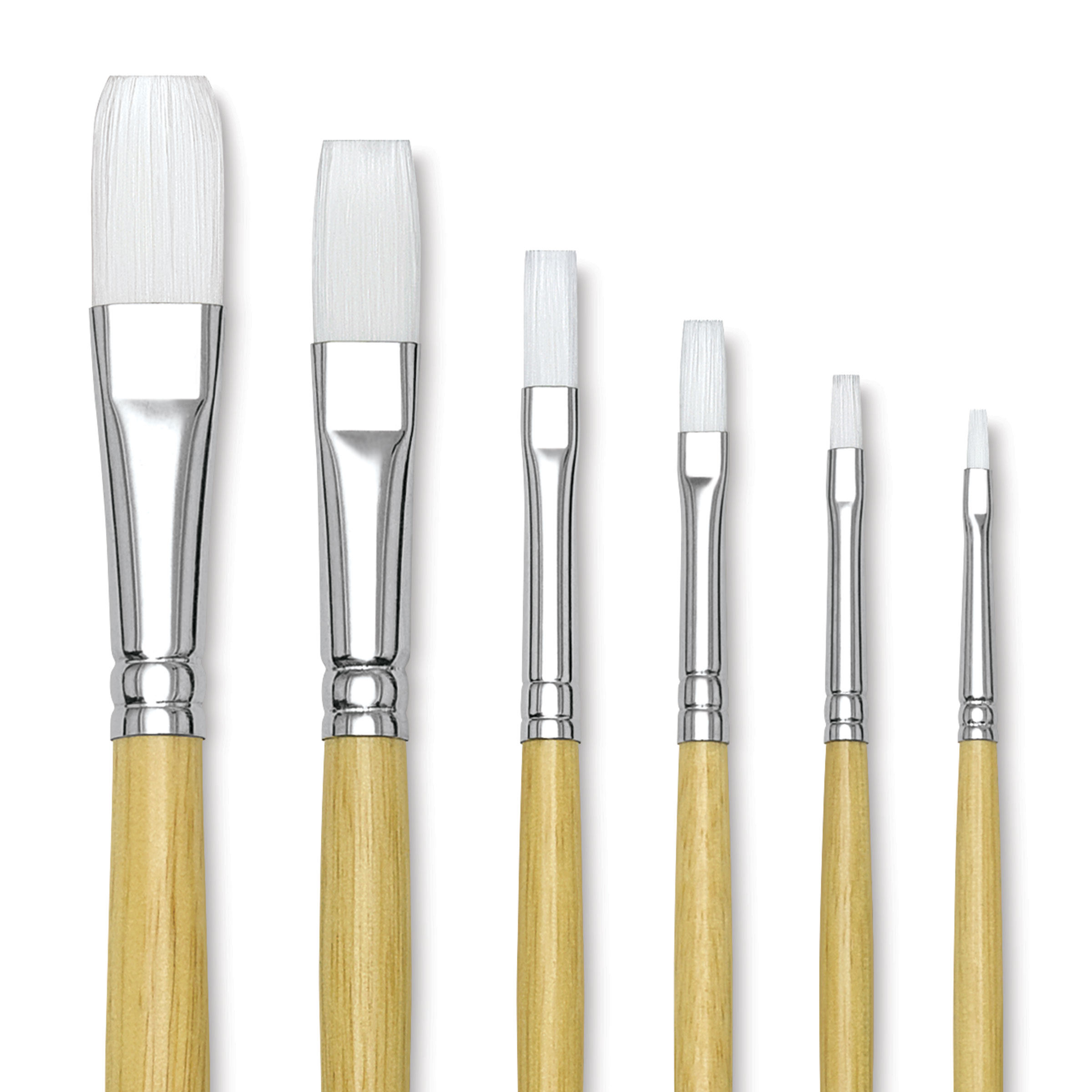 This set includes one Flat brush each of sizes 2, 4, 6, 8, 12, and 16.
