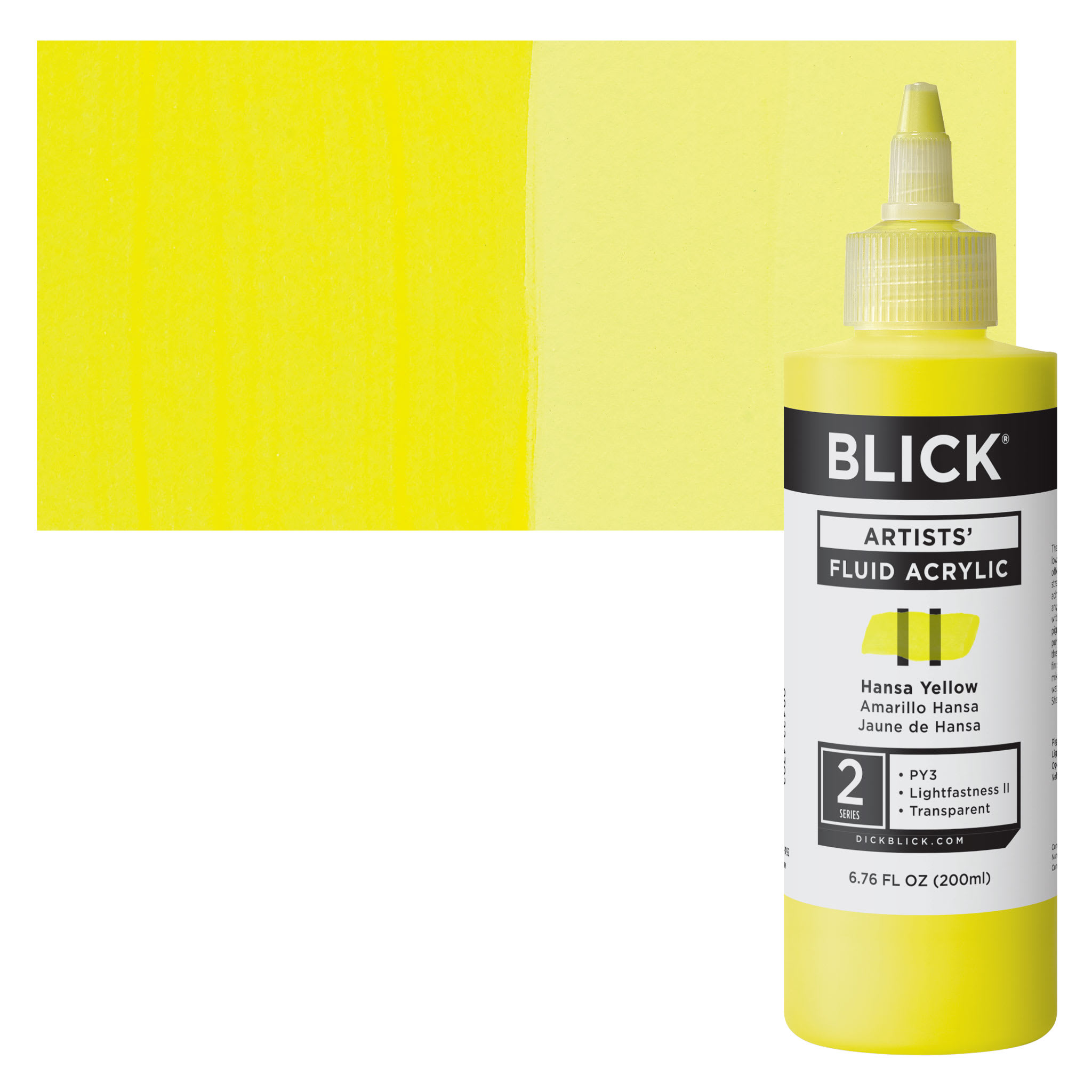This Hansa yellow is a transparent yellow. It has great brightness and tinting strength and its drying time ranges from average to slow. Hansa Yellow makes more intense tints and cleaner secondaries than Cadmium Yellows, especially when mixed with other organic or modern colors like Phthalo Blue and Green. Because they are more transparent, they have great value as glazing colors.