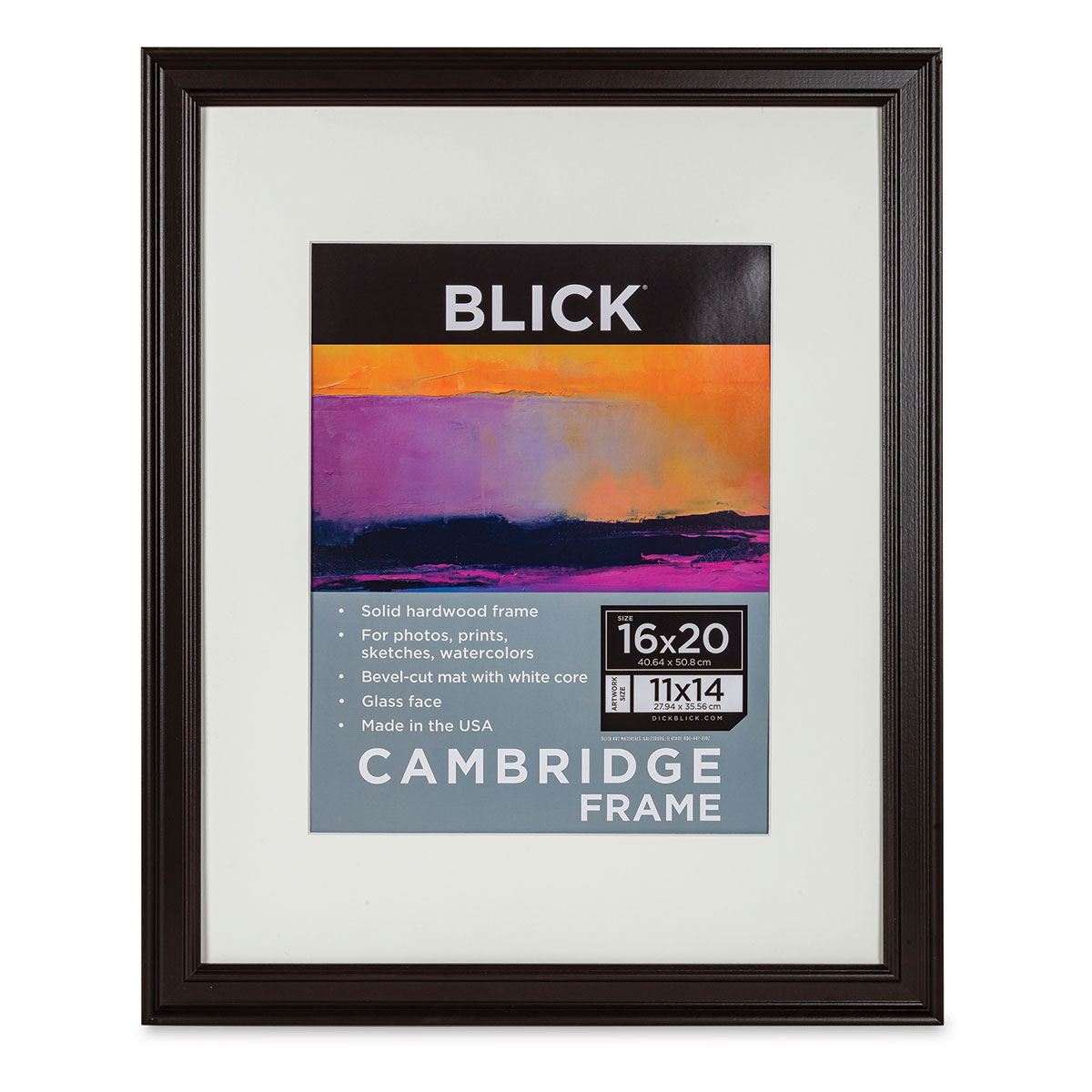 Frame Dimensions – Frames are measured by the size of the artwork they hold. Measure your artwork, mat, or panel, and order that size frame. The frame will overlap your artwork by about 1/4" on each side so it fits securely. If the frame includes a precut mat, the mat opening is indicated as Artwork Size.