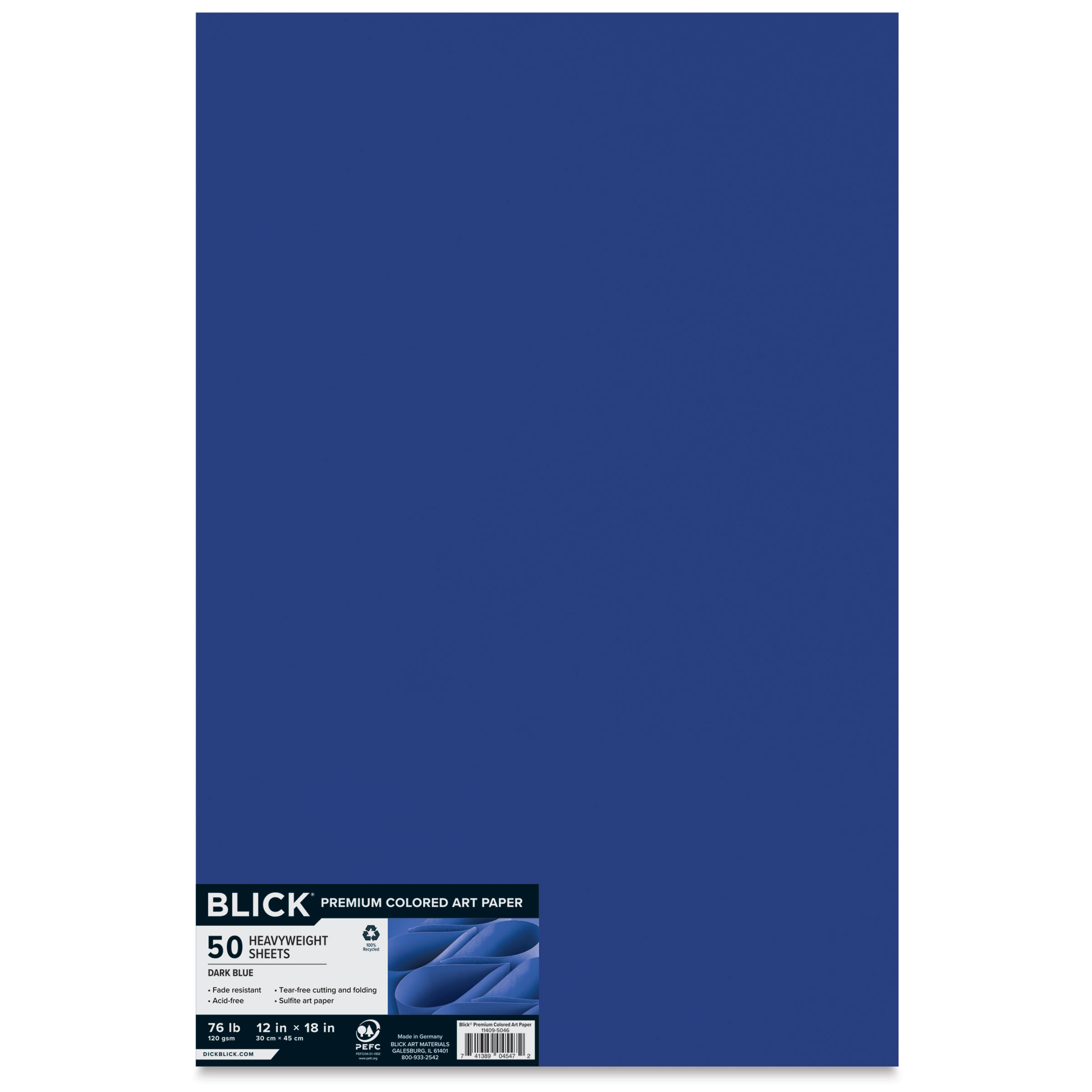 Blick Premium Colored Art Paper - 12" x 18", Dark Blue, 50 Sheets, front