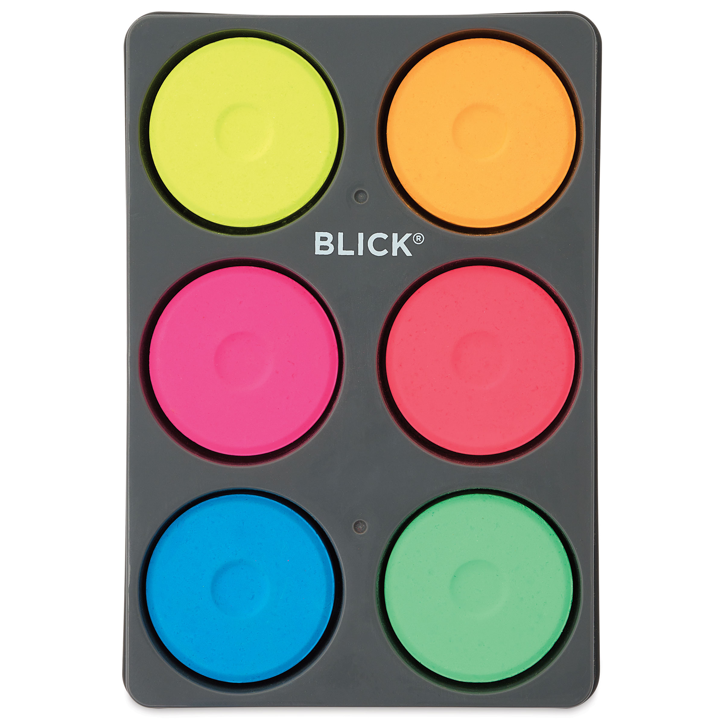 Includes Fluorescent Blue, Fluorescent Green, Fluorescent Orange, Fluorescent Pink, Fluorescent Red, and Fluorescent Yellow with a tray.
