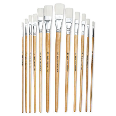 Includes 12 Flat brushes in sizes 1, 2, 3, 4, 5, 6, 7, 8, 9, 10, 11, and 12.