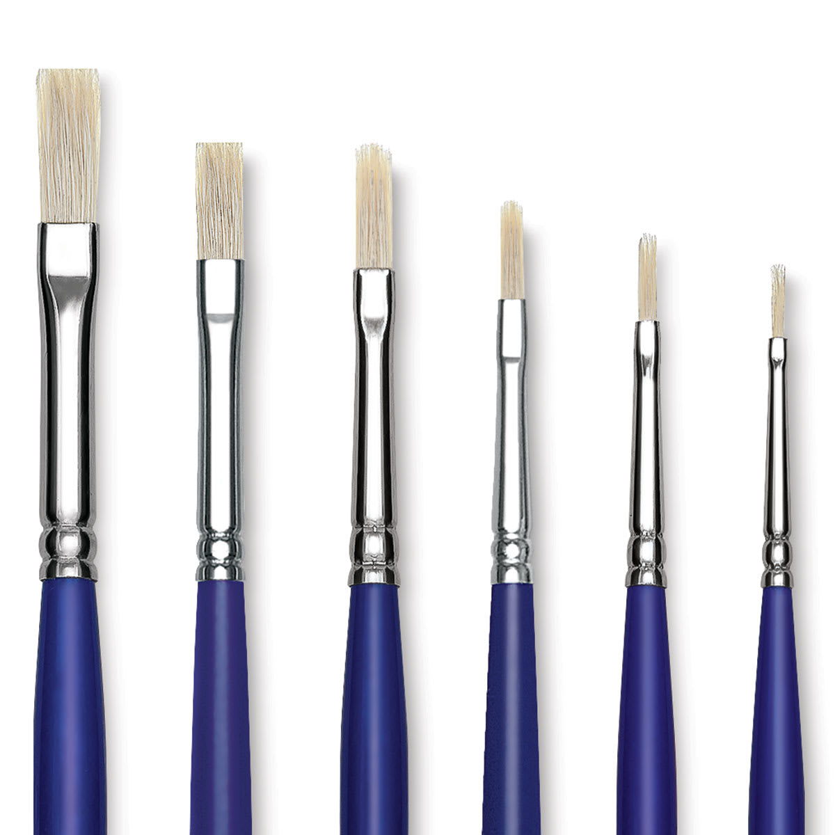 This set includes Filbert brushes sizes 0, 1, 2, 4, 6, and 8.