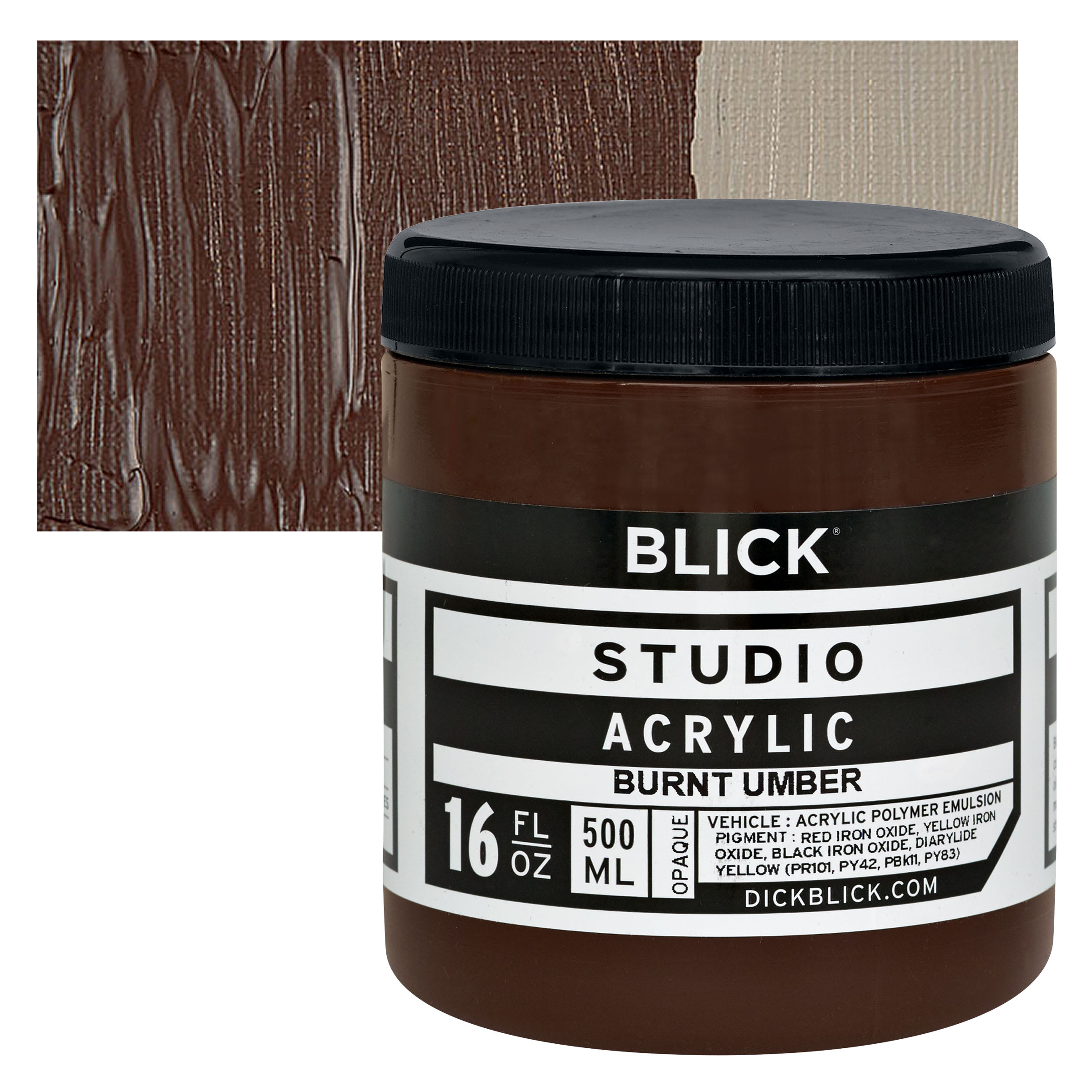 Blick Studio Acrylic Paint - Burnt Umber, 16 oz jar and swatch