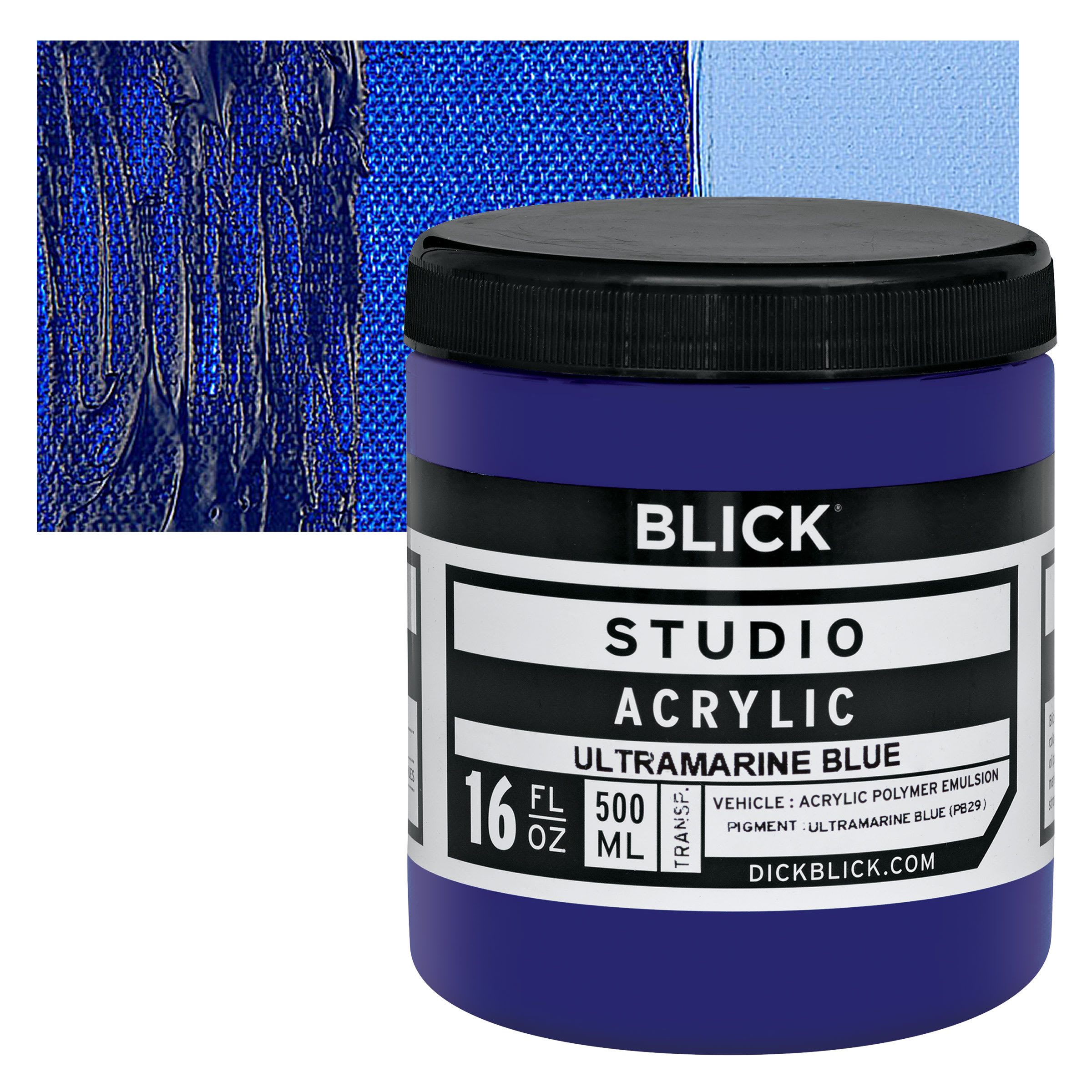 Ultramarine is the standard warm blue, a brilliant blue pigment that has the most purple and least green in its undertone. It has a moderate to high tinting strength and a beautiful transparency. Synthetic Ultramarine is not as vivid a blue as natural Ultramarine. Ultramarine dries slowly in oil and tends to produce clean, though granular, washes in watercolor. French Ultramarine mixes well with Alizarin colors in oil and watercolor form to create a range of purples and violets. It can dull when mixed with white in acrylic form, but mixes well with other colors. The shade varies based on manufacturer. Considered a great color for glazes, it is not suitable for frescoing.