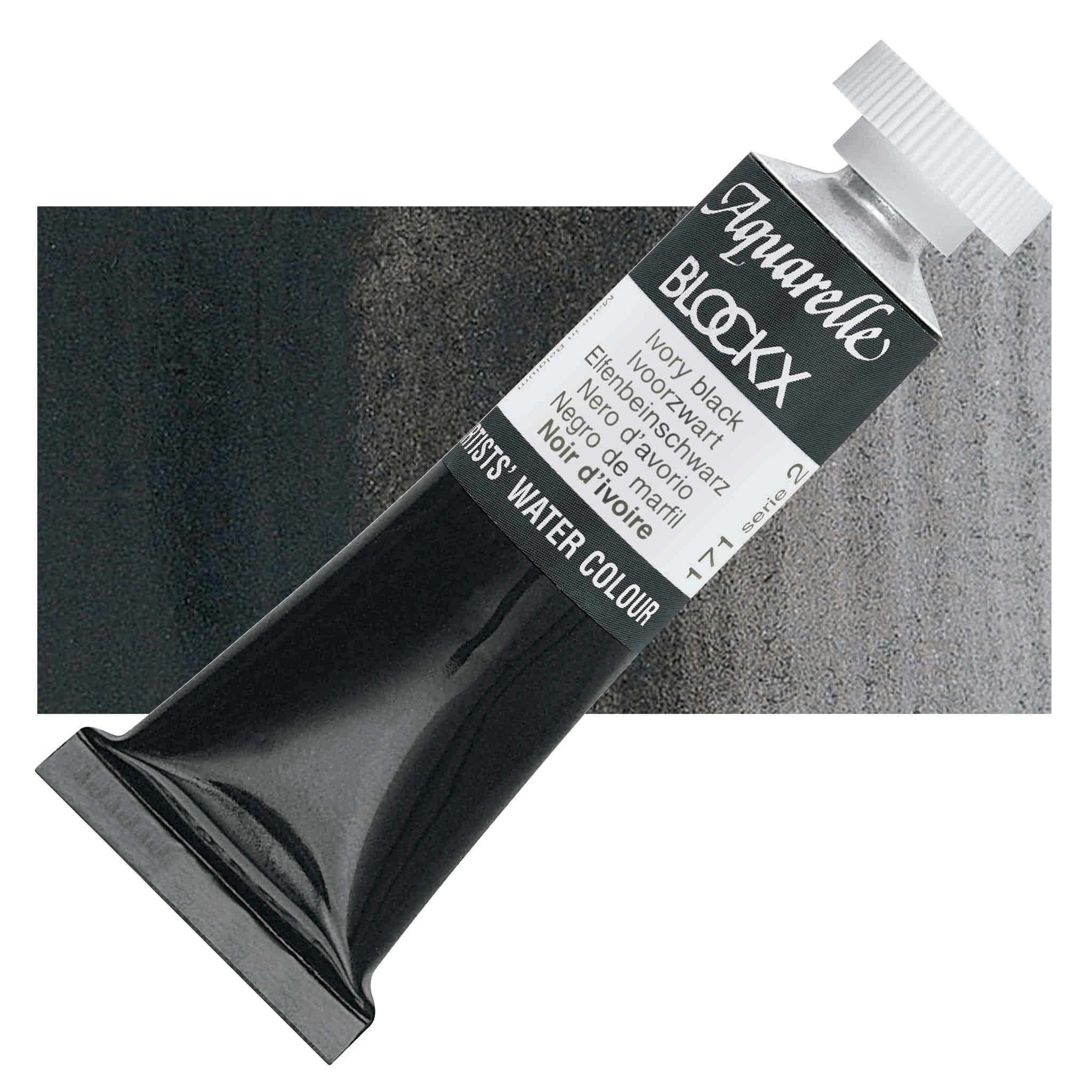 Ivory Black is a cool, semi-transparent blue-black with a slight brownish undertone and average tinting strength. It mixes well with any color, and creates a range of dull greens when mixed with yellow. It has good properties for use in oil, can be slow to dry in oil form, and should never be used in underpainting or frescoing. Ivory Black is denser than Lamp Black.