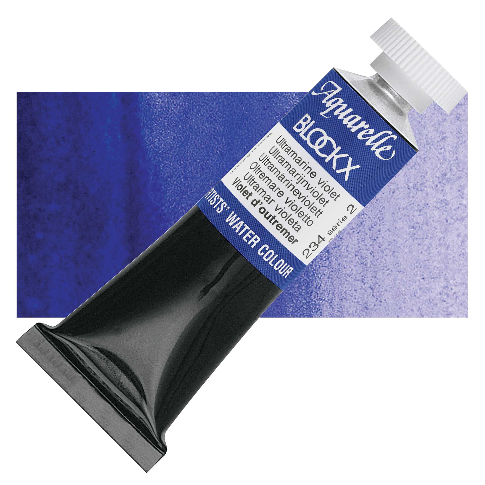 Blockx Artists' Watercolor - Ultramarine Violet, 15 ml tube and swatch