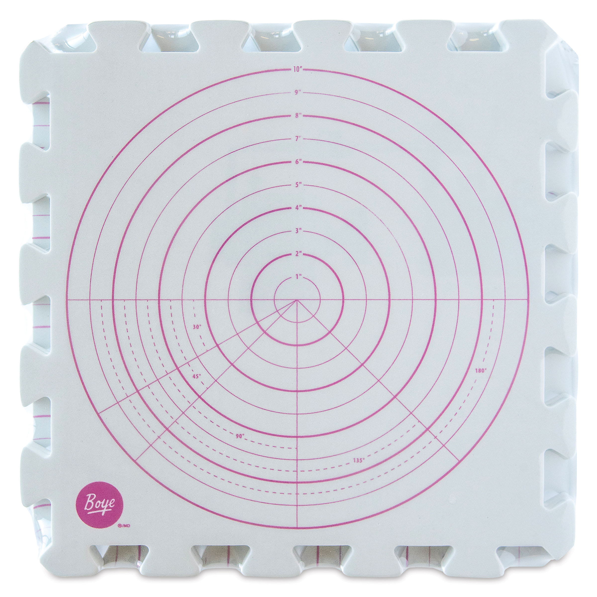 Includes four 12" x 12" interlocking foam boards with a double-sided circular patterns for blocking small and large circular projects.