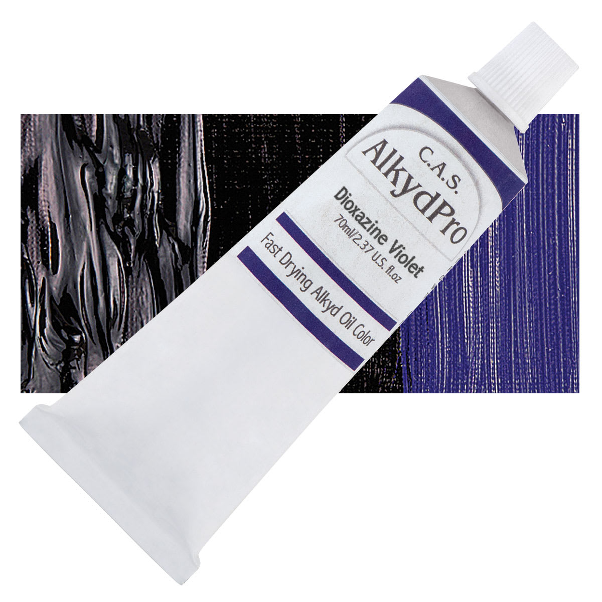 Dioxazine Violet is transparent and has very high tinting strength. It is a staining pigment, very dark valued when it is used at full strength. Concentrated, it paints out nearly black, but it mixes with Titanium White to form bright, opaque tints of purple. PV23 produces slightly redder shades than PV37. Because the hue can vary with the conditions of preparation and grinding, it may be offered in red shade, blue shade, and so forth.