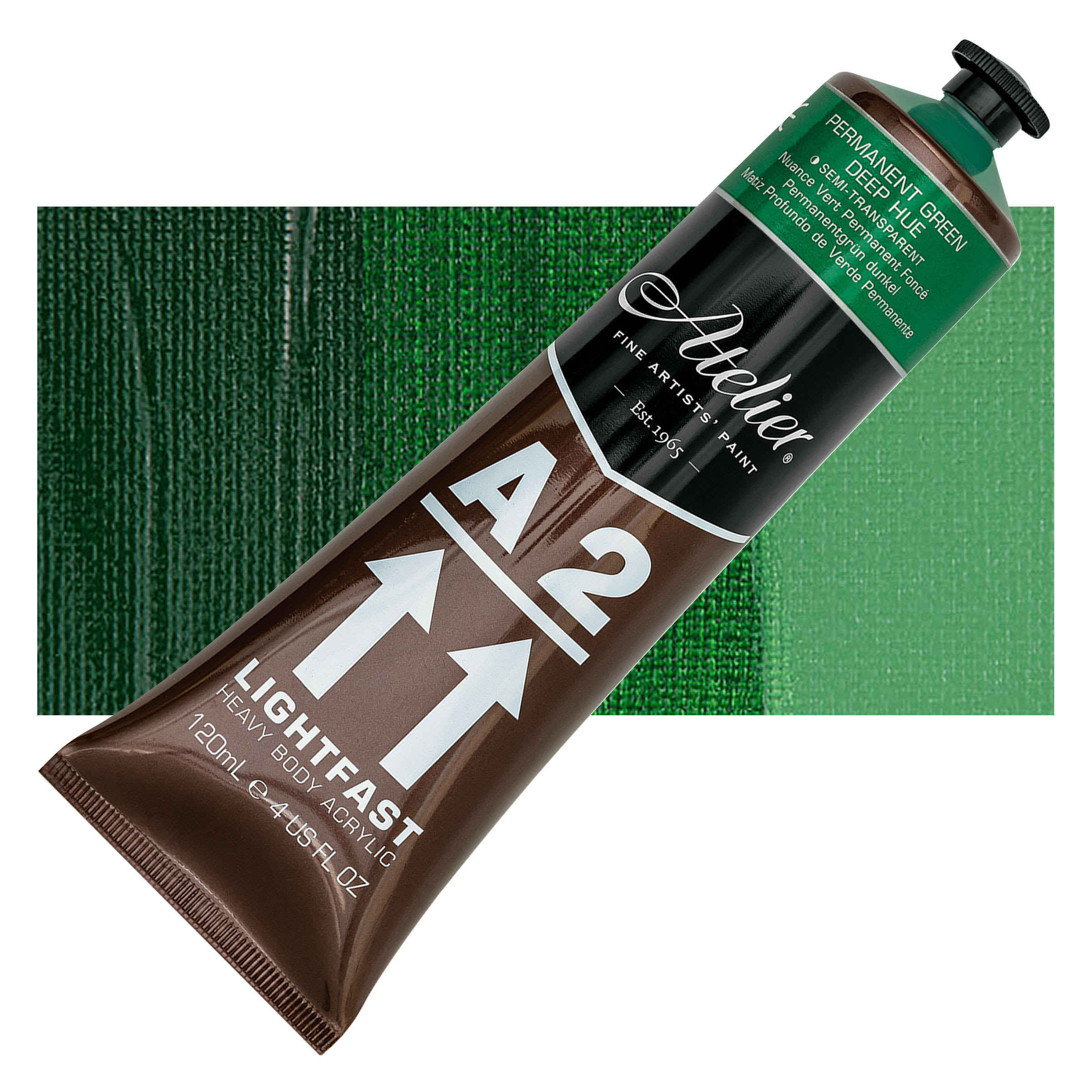 Chroma A2 Student Acrylic - Permanent Green Deep Hue, 120 ml tube and swatch