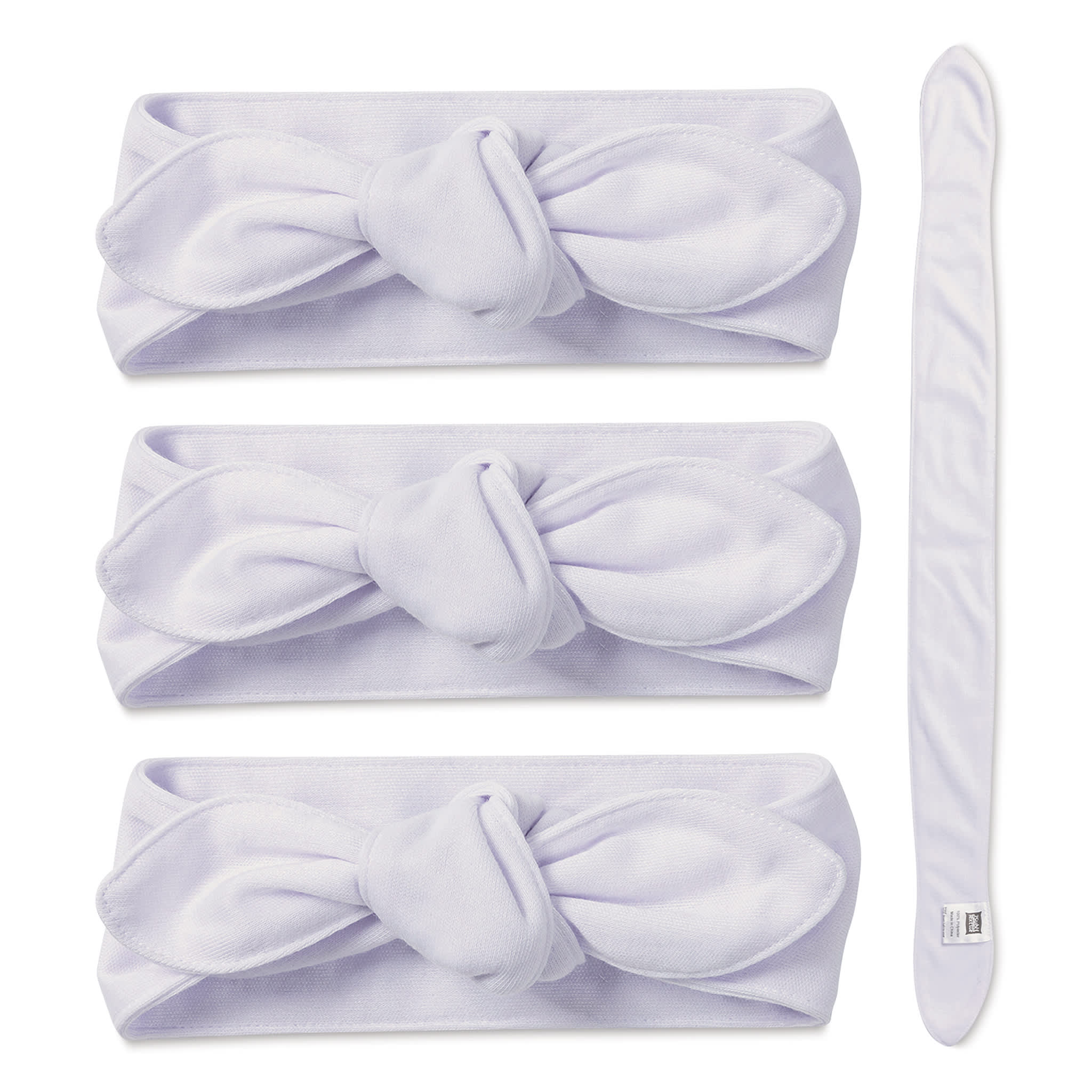 Made of soft, lightweight polyester, headbands are lightly stretchy for comfort. They measure 2" x 25-1/2" (5 cm x 65 cm) and fit most infants ages 0-6 months.