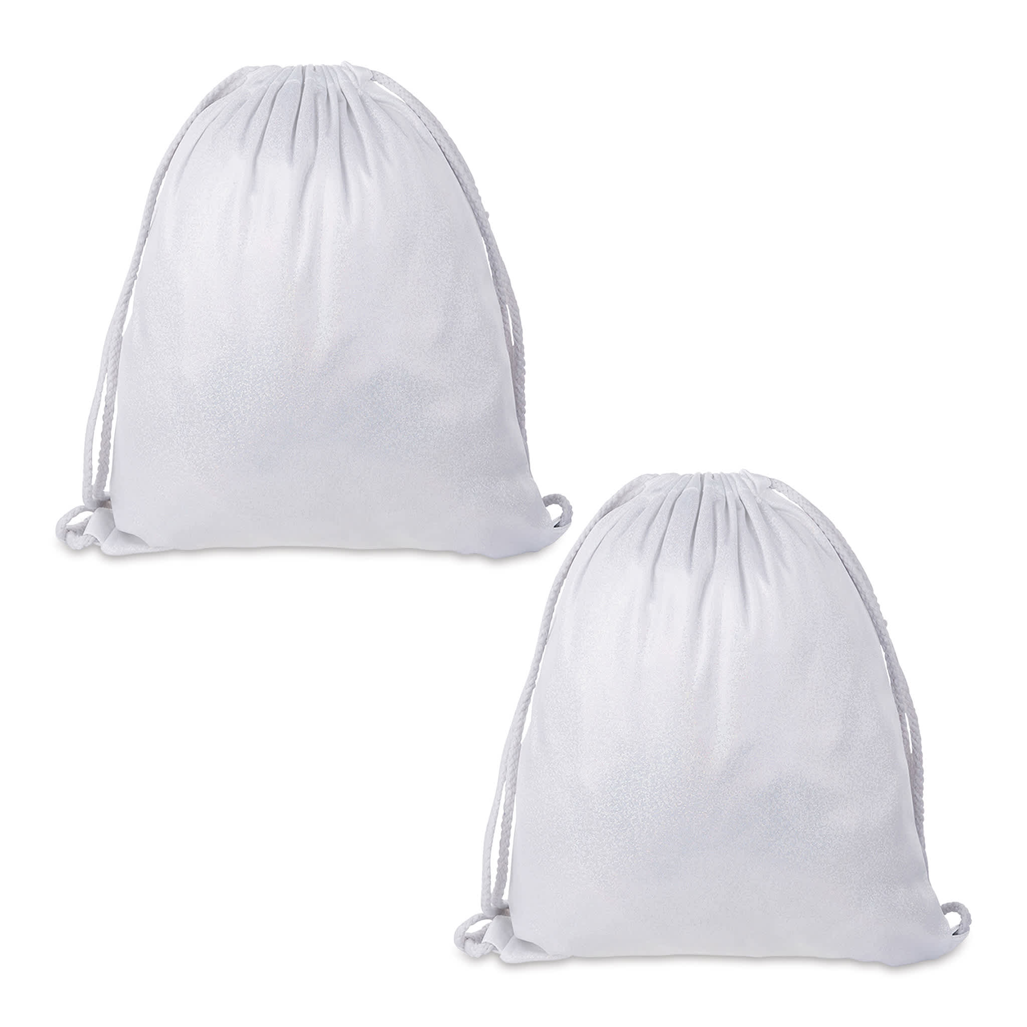 Includes two white bags with an iridescent, ultra-glossy finish. Printable on both sides. Machine or hand wash. 13" x 16-1/2" (33 cm x 42 cm).