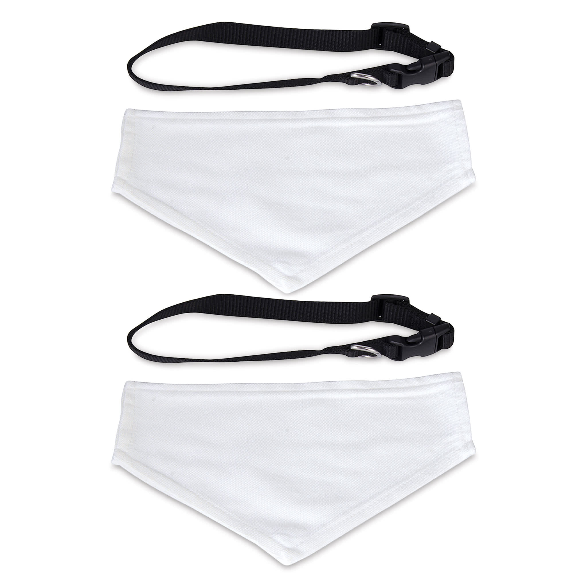 Includes two pet scarves measuring 5" x 8" (13 cm x 20 cm) and two black adjustable collars. Collars adjust in length from 11-3/4" to 17" (30 to 43 cm).