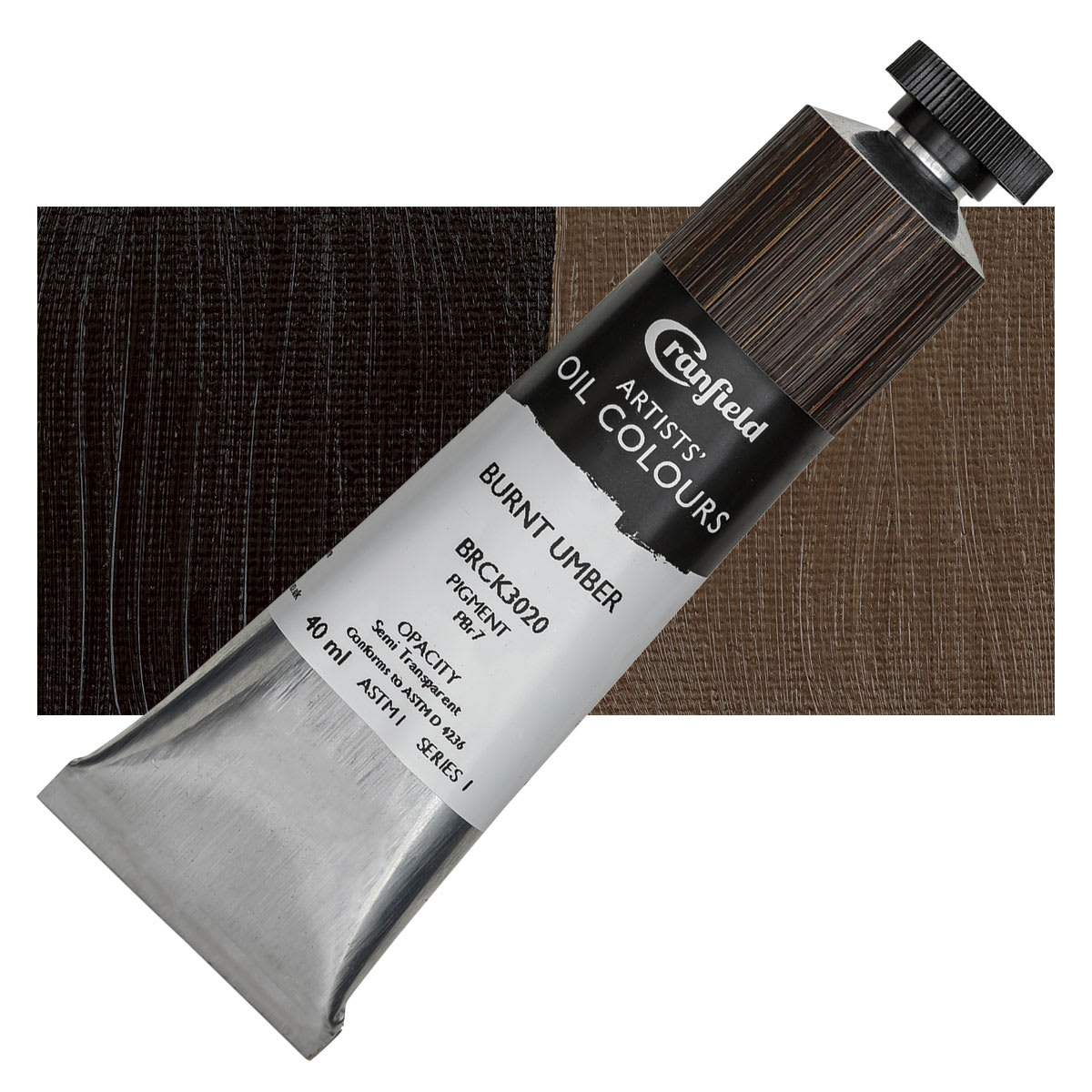 Burnt Umber is a more intense reddish brown pigment that results from heating the clay pigment Raw Umber. It has medium to excellent tinting strength and high opacity, and it is quick drying in oil form. Burnt Umber is somewhat more transparent than Raw Umber. It has excellent color properties and can create a variety of subtle, clear tints when mixed with white. It can tend towards chalkiness in dark mixes in oil form, but overall it mixes well with other colors. To create a black color in oil form, mix Burnt Umber with Phthalo Blue or Ultramarine. To achieve a similar color in watercolor form, mix it with Ultramarine or Payne's Gray.