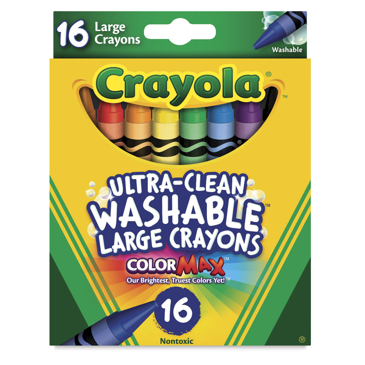 The 16-color set contains the eight colors listed above, plus Blue-Green, Blue-Violet, Carnation Pink, Red-Orange, Red-Violet, White, Yellow-Green, and Yellow-Orange.