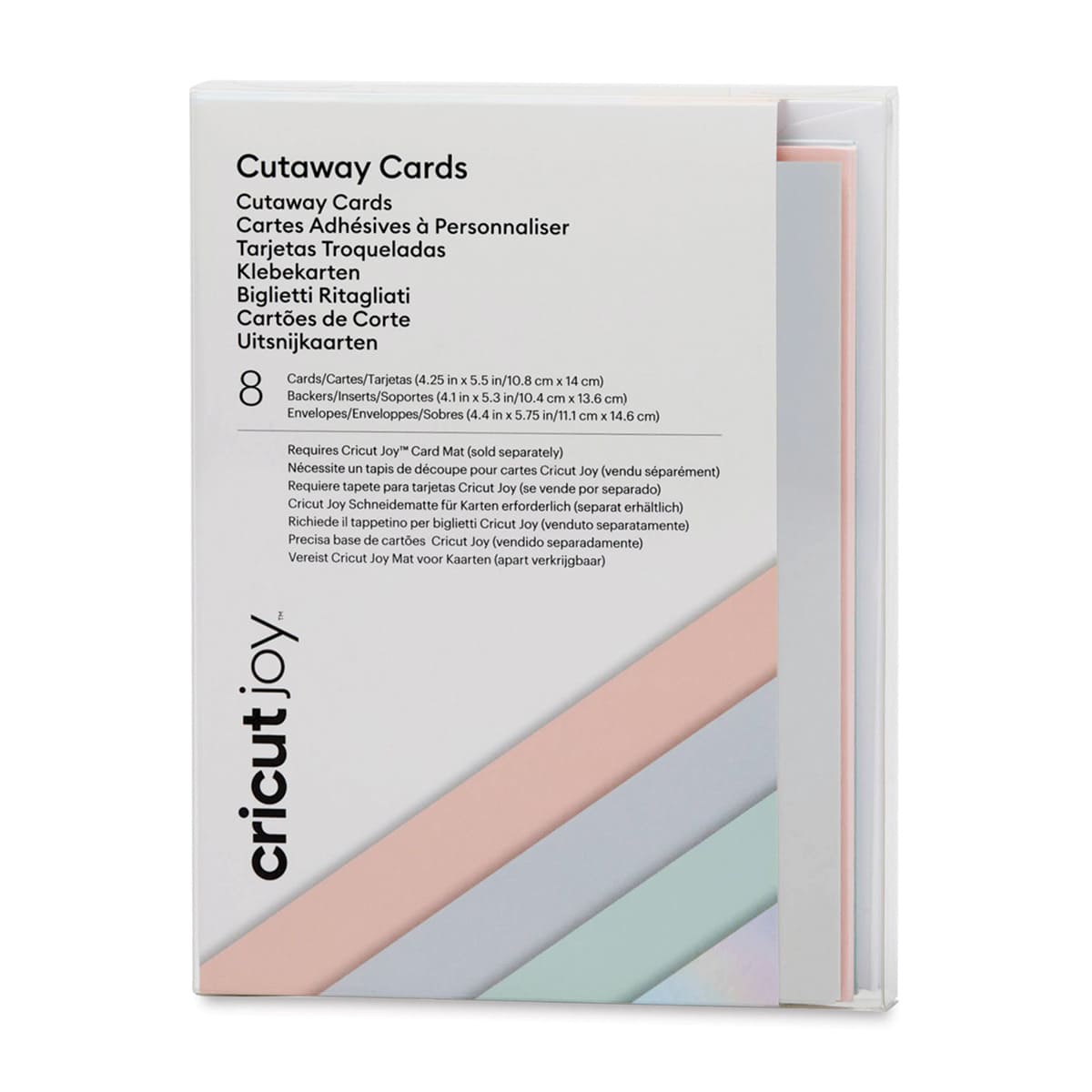 Includes eight cards (three Tulip, three Powder Blue, two Whispering Blue) with adhesive, eight Silver matte holographic backers, and eight White envelopes.