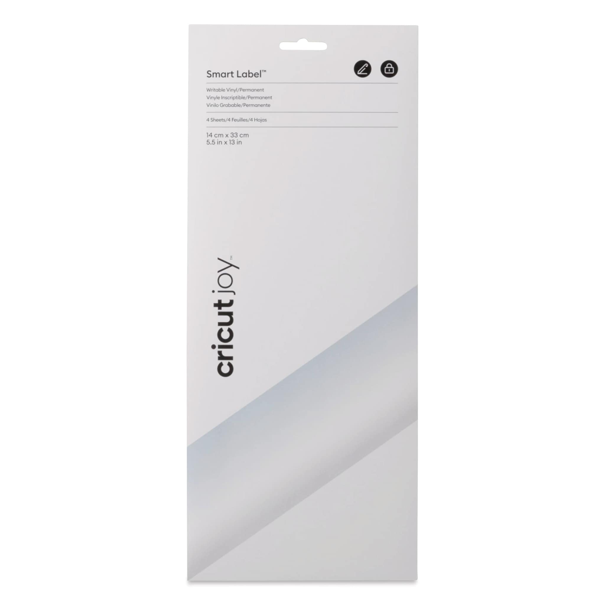 Cricut Joy Permanent Smart Label Writable Vinyl - Transparent, Pkg of 4 Sheets, front of the packaging