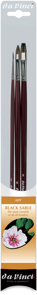 This three-brush set contains one series 1640 Round size 2, one series 1840 Bright size 8, and one series 1845 Filbert size 6.