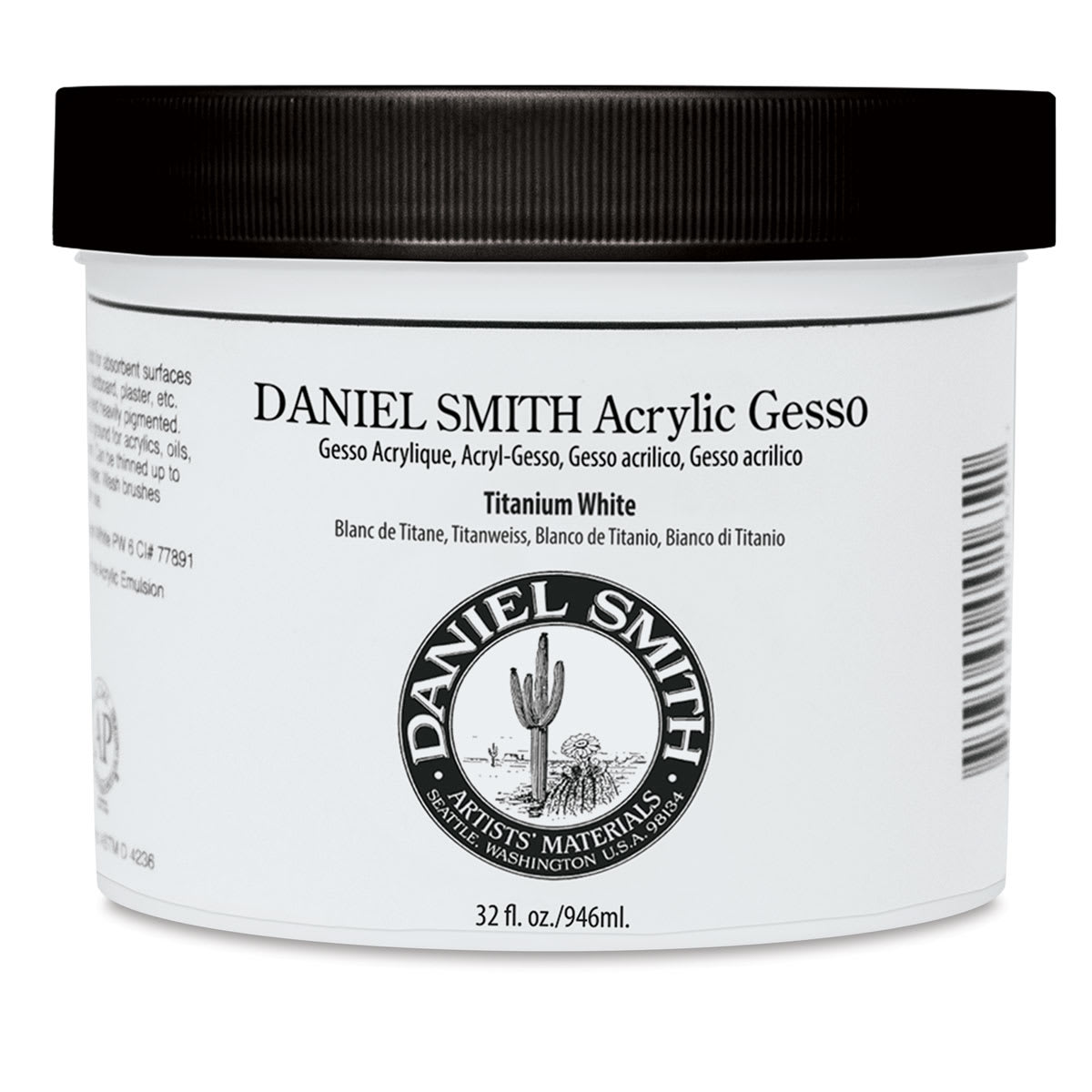 This archival, acid-free 32 oz. jar of titanium white gesso is thick and heavily pigmented. It's made with a high-grade acrylic emulsion for optimal flexibility and durability. Titanium White Gesso offers excellent coverage and opacity and has a great lightfast rating. Use it to create a paintable surface for acrylics, oils, and alkyds. It cleans up with water. This gesso doesn't contain the oil acids found in traditional grounds (which tend to deteriorate cotton or linen canvas fibers) so an under-sizing isn't needed.