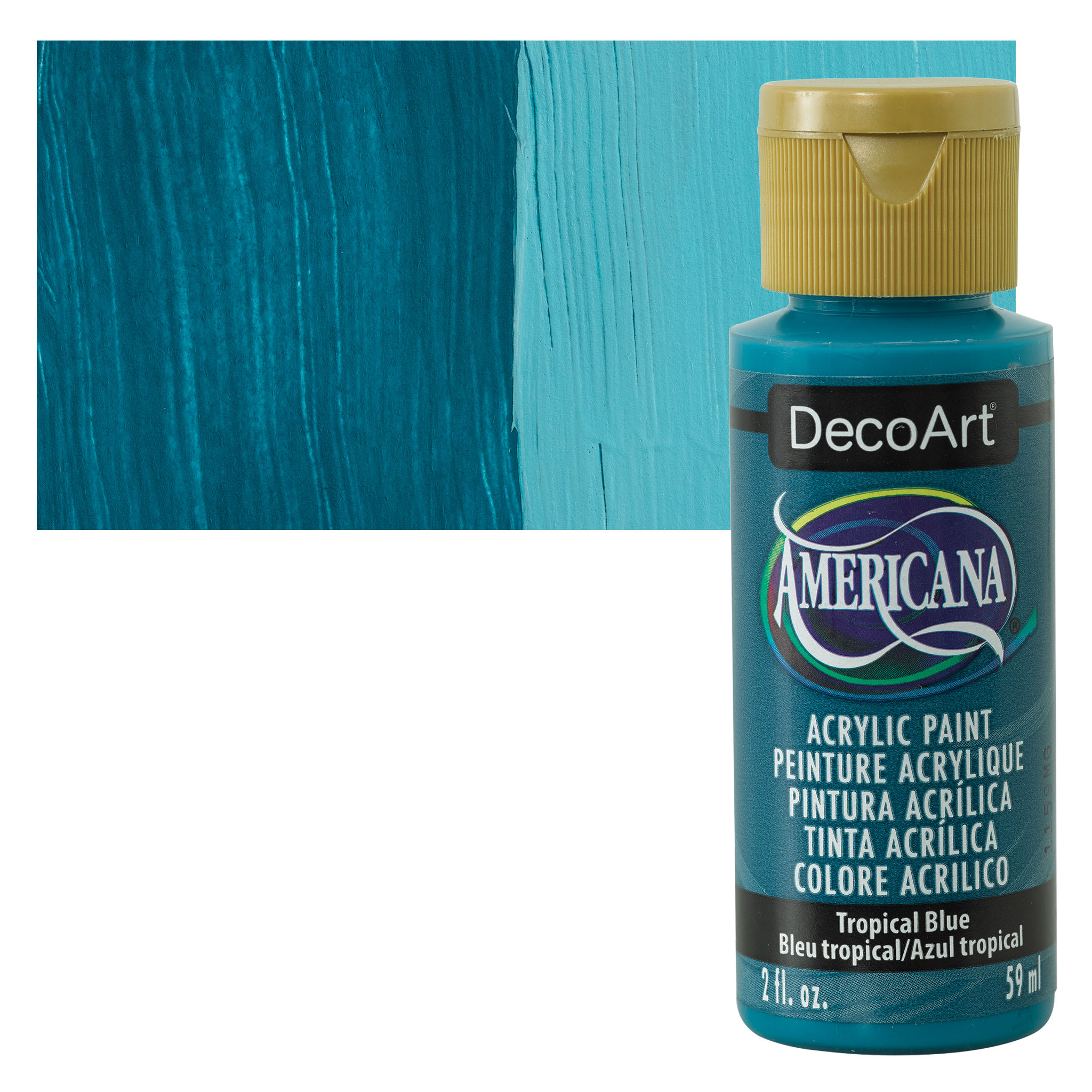 DecoArt Americana Acrylic Paint - Tropical Blue, 2 oz bottle and swatch