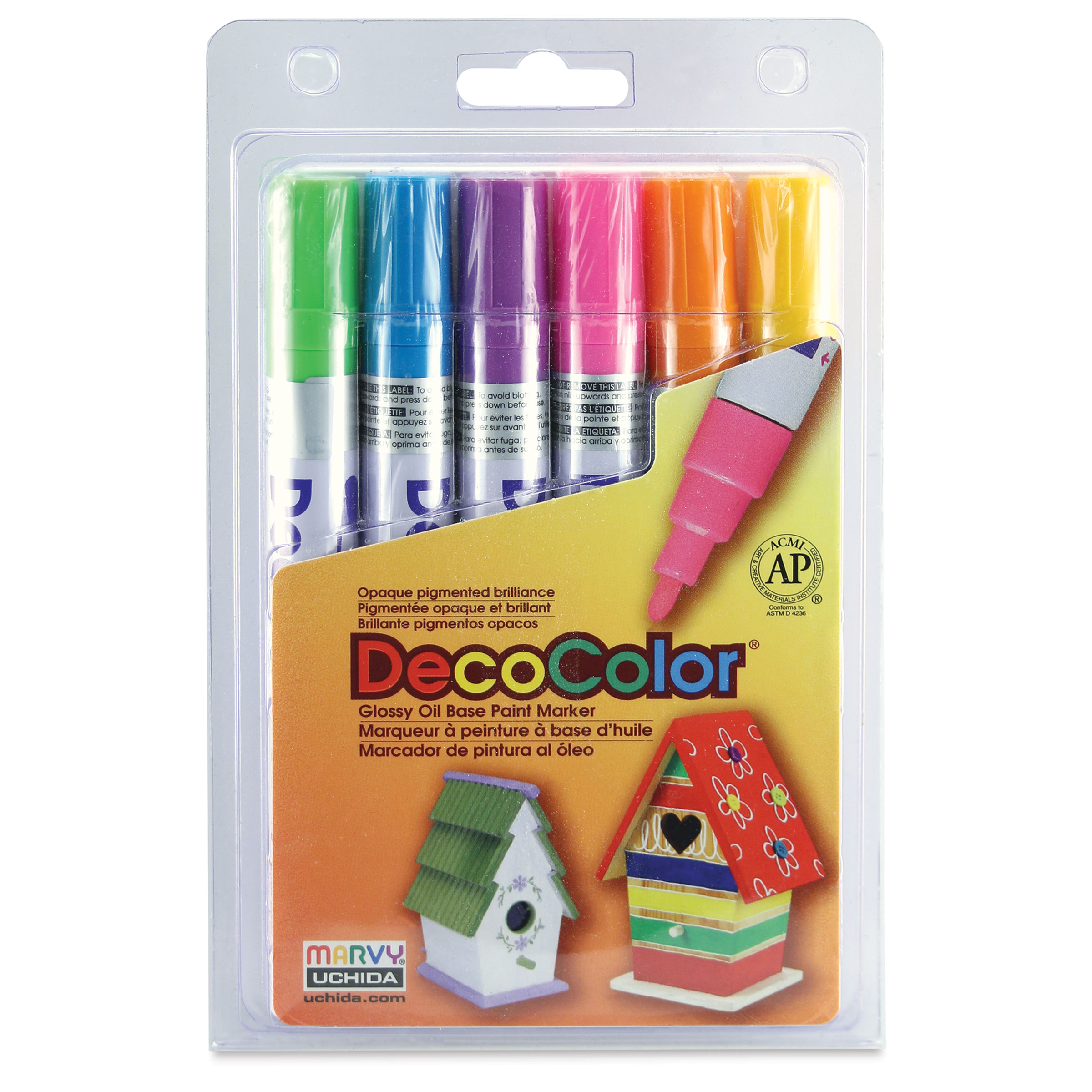 This set contains one Broad Tip marker in each of six colors, including Yellow, Orange, Light Blue, Light Green, Rosemarie, and Hot Purple.