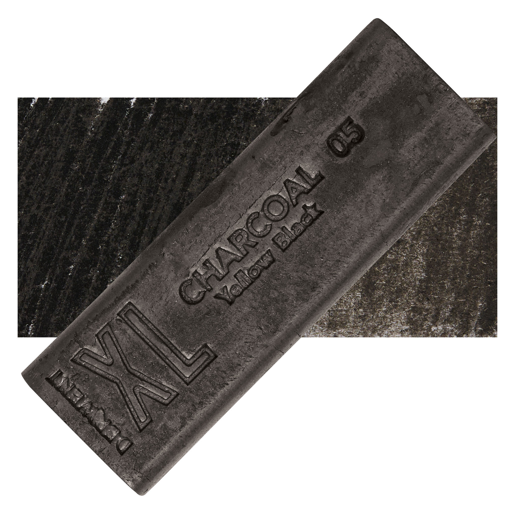 Derwent Charcoal XL Block - Yellow Black, swatch and block