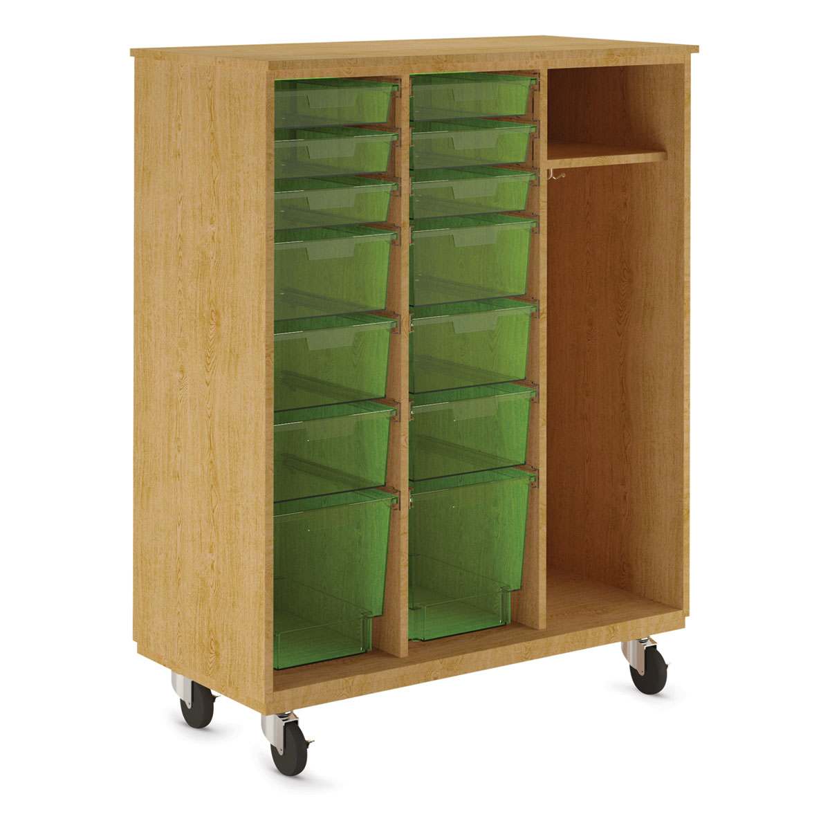 Diversified Spaces Mobile Tote and More Storage Cabinet - Oak with Lime Totes