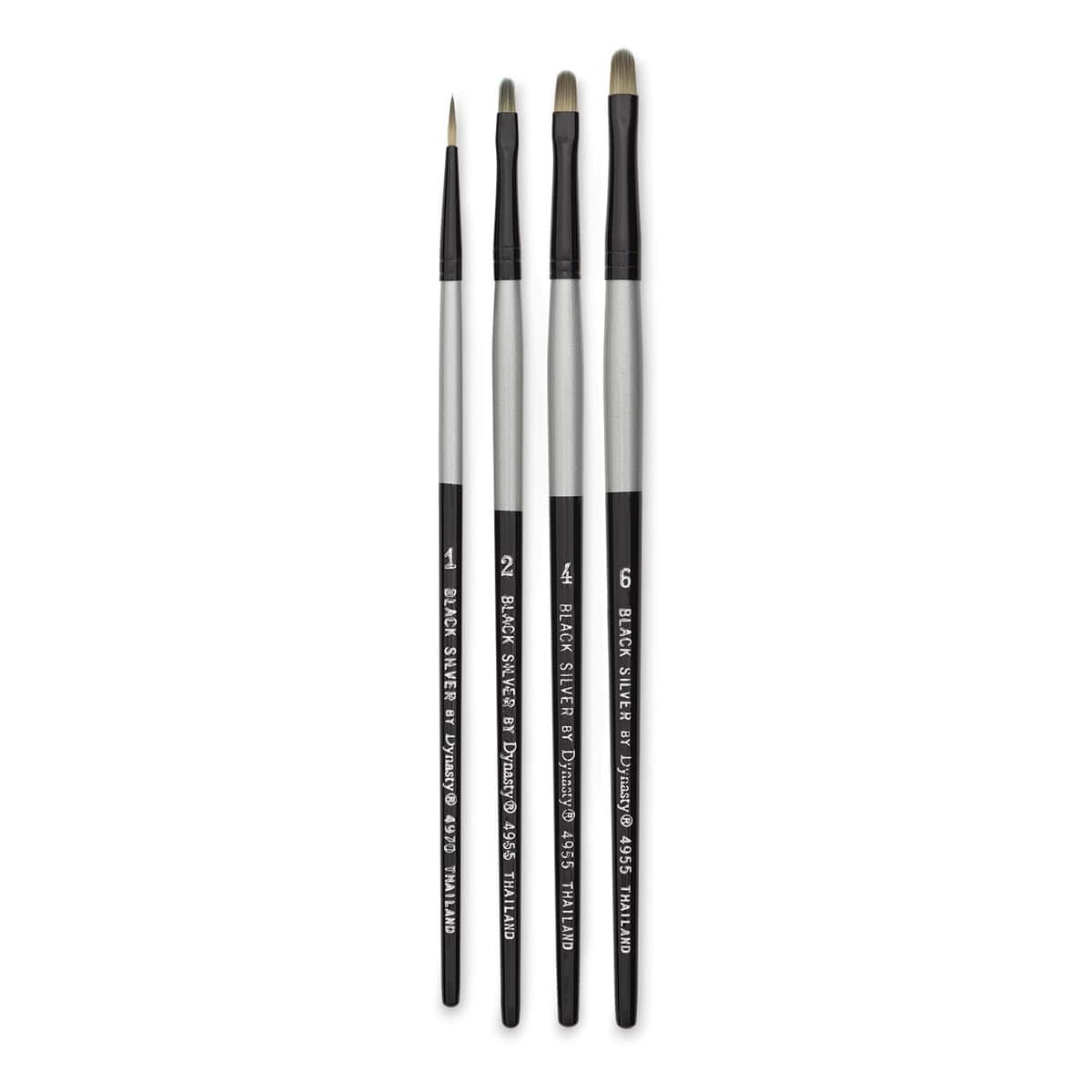 Contains four brushes included Filbert sizes 2, 4, and 6, and Round size 1.