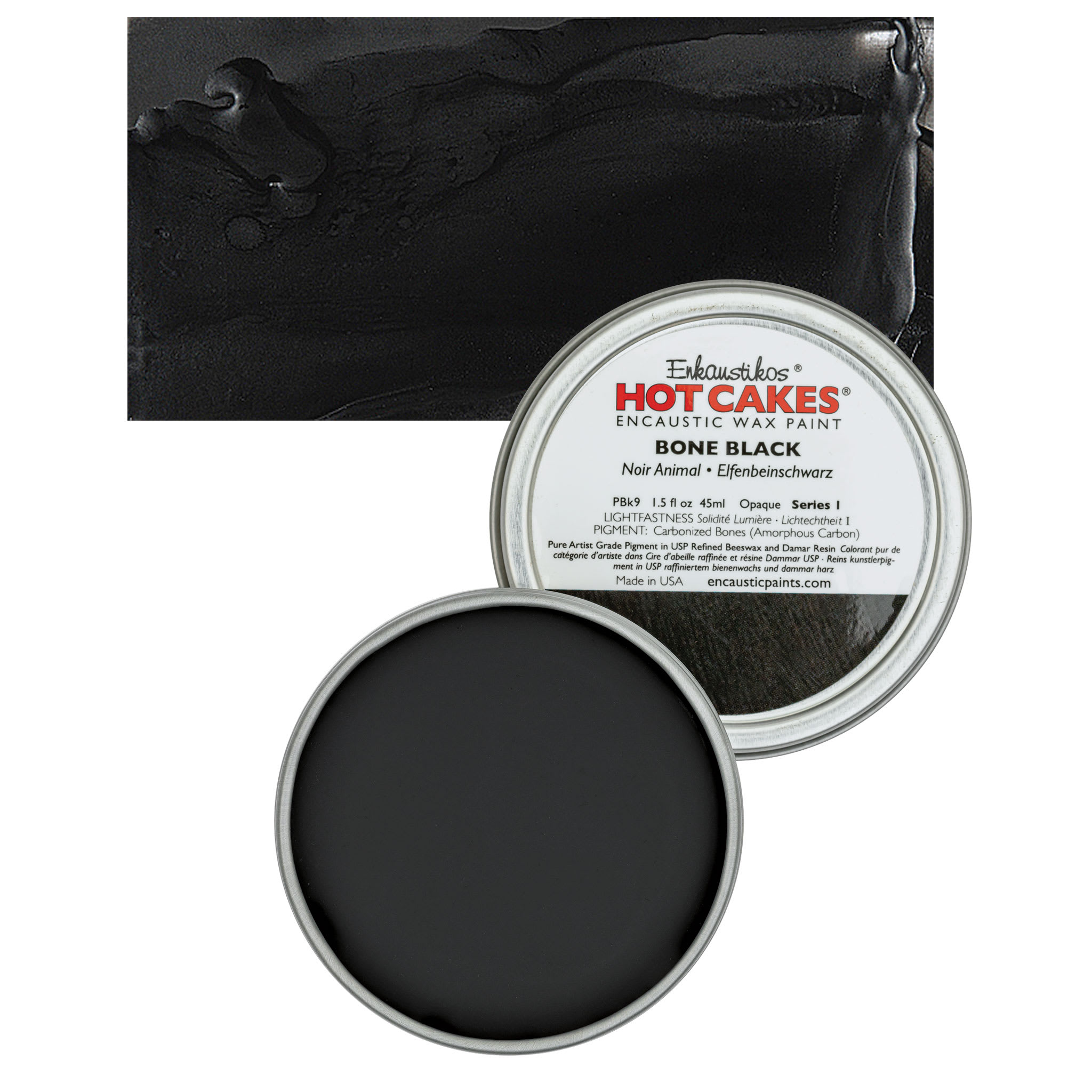 Ivory Black is a cool, semi-transparent blue-black with a slight brownish undertone and average tinting strength. It mixes well with any color, and creates a range of dull greens when mixed with yellow. It has good properties for use in oil, can be slow to dry in oil form, and should never be used in underpainting or frescoing. Ivory Black is denser than Lamp Black.