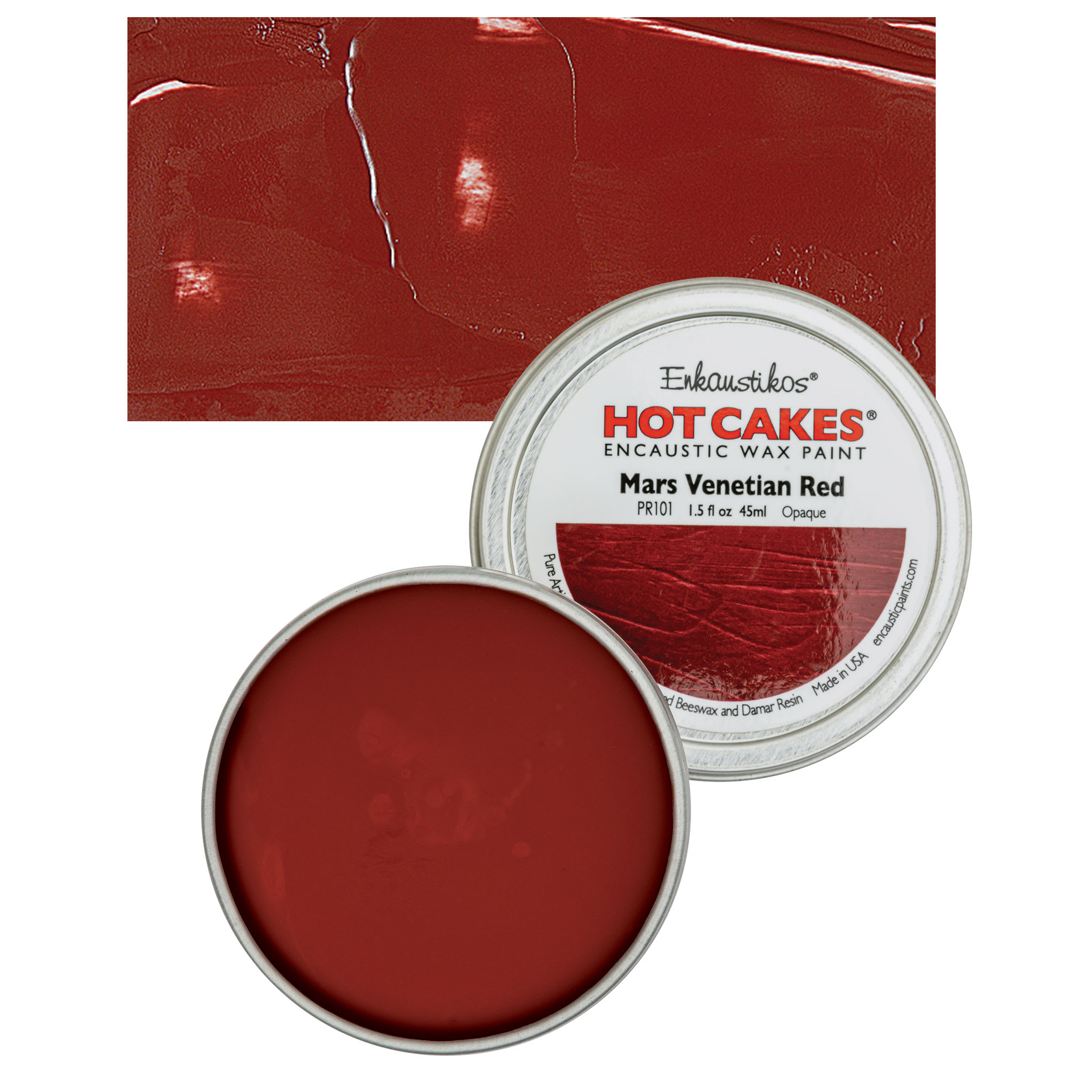 Red iron oxide varies in hue and transparency, depending on hydration and slight impurities. Indian Red is a slightly duller, deep brick hue with a bluish undertone. It is very dense and opaque, with excellent tinting strength and covering power. It is dependable when mixing with all other permanent pigments and yields good flesh tints when mixed with Zinc White. It is the synthetic version of PR102, which is a pigment made from earth reds, or natural red iron oxides, and the names applied to PR101 and PR102 often overlap. The synthetic red iron oxides have mostly replaced natural red iron oxides and are brighter, stronger, finer, and more permanent. Indian Red is the highest grade bluish shade. Light Red, English Red, and Venetian Red are yellowish shades. Mars Violet is a dull and subdued bluish or purplish oxide.