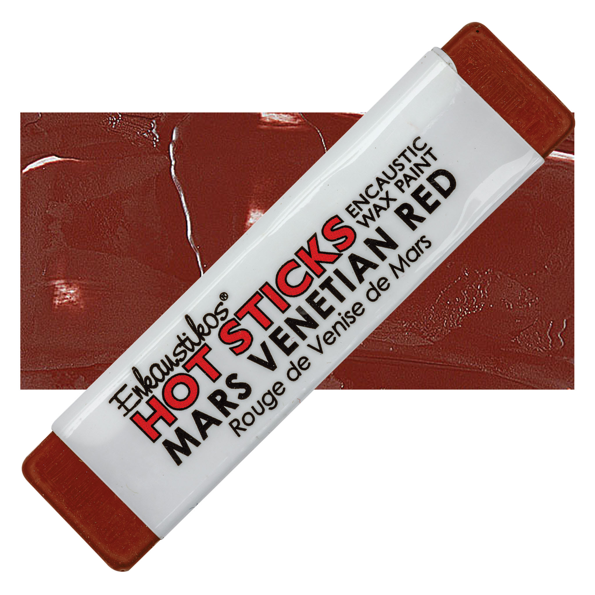 Enkaustikos Hot Sticks Encaustic Wax Paint - Mars Venetian Red, 13 ml Stick and swatch