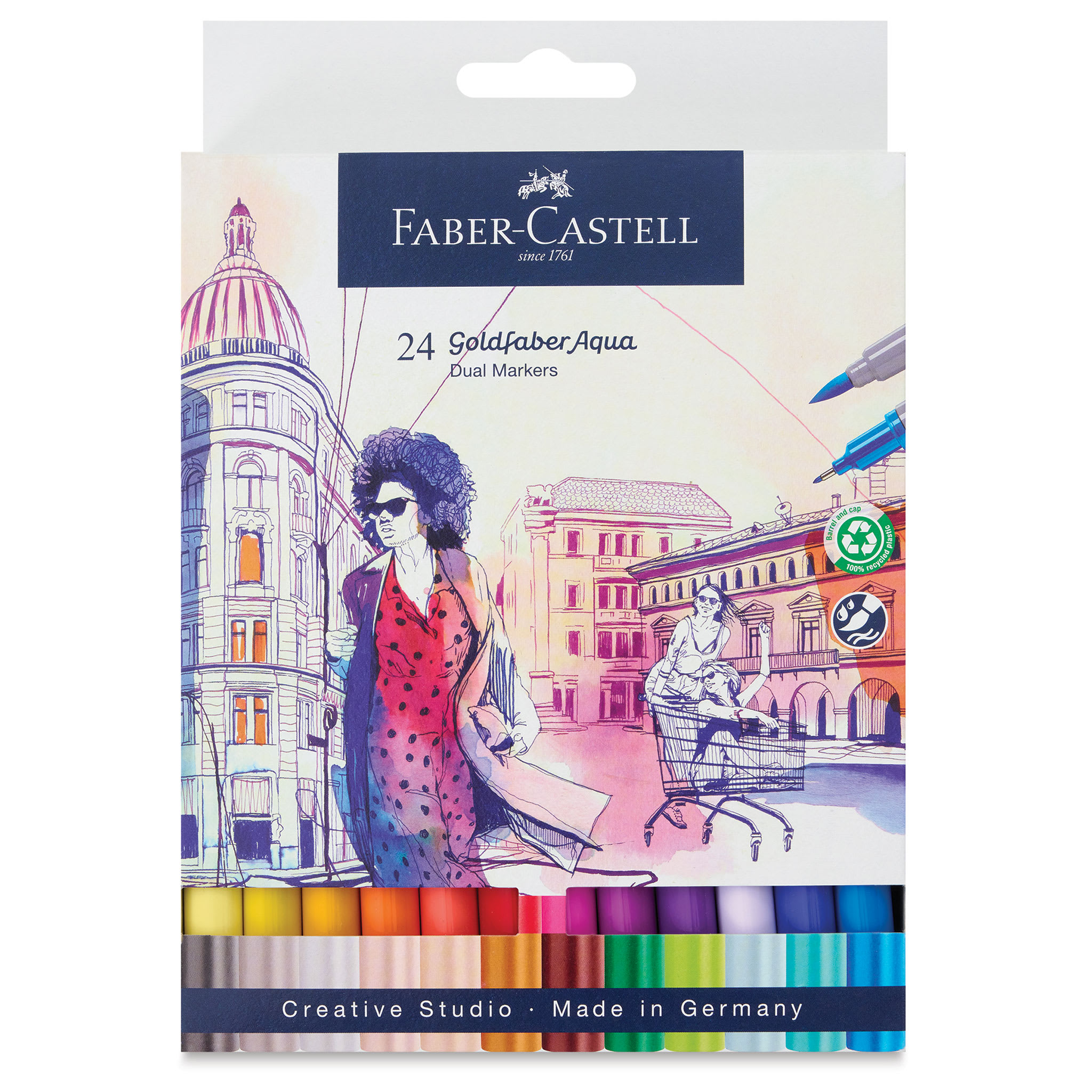 Includes the colors 107 Cadmium Yellow, 109 Dark Chrome Yellow, 122 Brilliant Red, 121 Pale Geranium Lake, 128 Light Purple Pink, 284 Purple, 137 Blue Violet, 449 Azure Blue, 356 Light Cobalt Green, 171 Light Green, 283 Burnt Siena, 115 Dark Cadmium Orange, 104 Light Yellow Glaze, 196 Lavender Light, 277 Titanium Violet Light, 116 Apricot, 281 Sand, 164 Water Blue, 228 Magenta Bright, 272 Warm Grey III, 183 Light Yellow Ochre, 163 Emerald Green, 110 Phthalo Blue, and 199 Black.