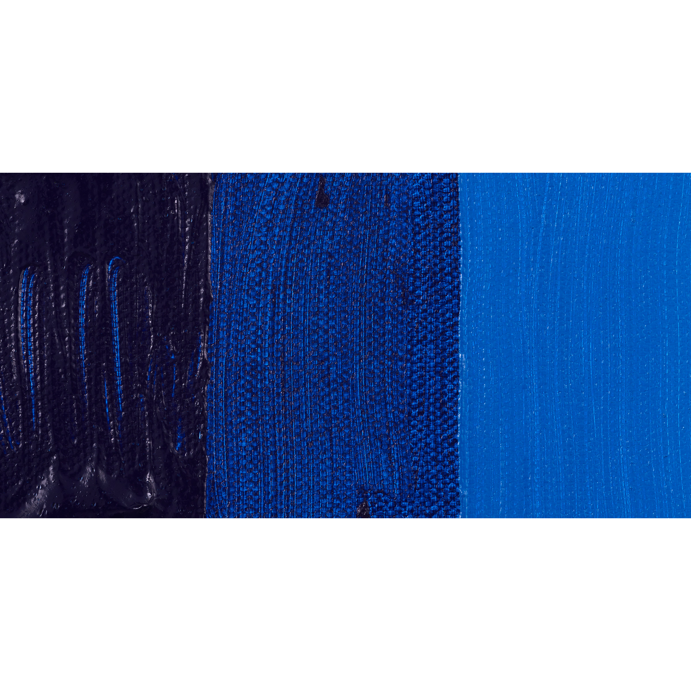 Phthalo Blues are pure and clean primary blues with superior covering power. They have a very high tinting strength and tend to overwhelm other pigments, but if color strength can be controlled, they make predictable mixed colors. In oil form, blues are very deep and slow drying. When mixed with other colors or if chlorine is added, Phthalo Blue quickly tends towards green. When using alone, mix with some white, as Phthalo Blue can be semi-transparent and almost black on its own. It is among the most compatible of modern colors with mineral colors and is considered more reliable than Prussian Blue, while sharing the same physical and color properties. Phthalo Blue is a good color for glazing.