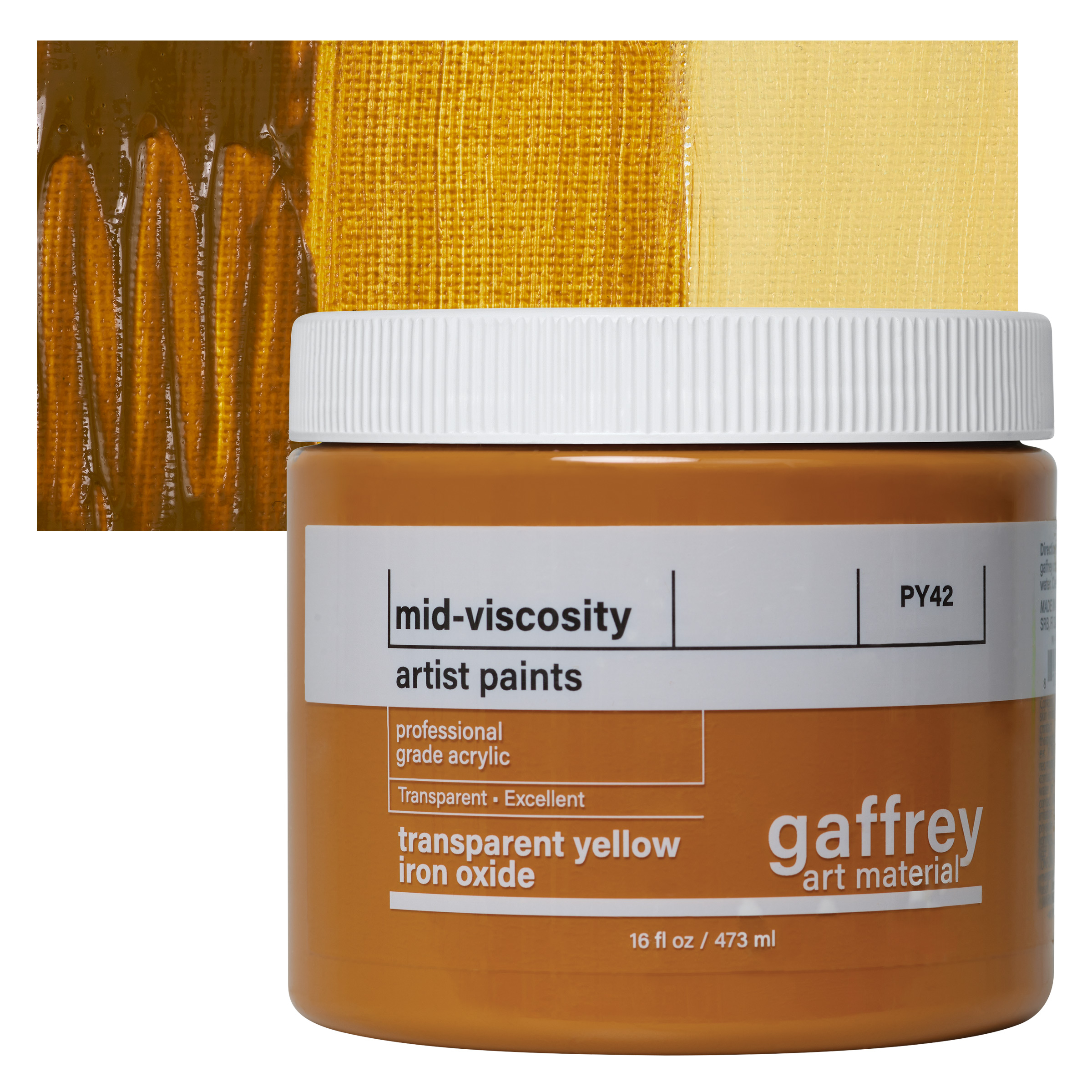 Yellow Ochre provides artists with earthtones from cream to brown. It has good hiding power, produces a quick drying paint, and can be safely mixed with other pigments. Its transparency varies widely from opaque shades to more transparent ones, which are valued for their use as glazes. If gypsum is present, Yellow Ochre is not suitable for frescoing. (See Brown Ochre, PY43.) PY42 is made from synthetic iron oxides. PY43 is made from natural iron oxide.