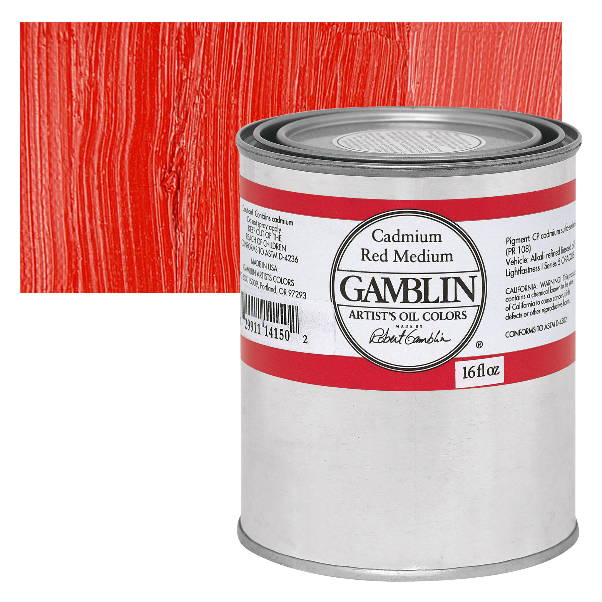 Cadmium Red is a bright, warm red that ranges in shade from orange-red to maroon and is available in light, medium, and dark versions. It is strong and opaque, with good tinting strength. Cadmium Red dries slowly. It grays down when mixed with white, mixes well with blues to create a range of browns, and mixes well with Cadmium Yellow to create a strong orange. It also works well in neutral mixes. Cadmium pigments have been partially replaced by azo pigments, which are similar in lightfastness to the cadmium colors, cheaper, and non-toxic. Hues vary by brand. Cadmium Red is usually available in either a pure grade or a cadmium-barium mix. The cadmium-barium mix has the same permanence as pure Cadmium Red, but it has a lower tinting strength.