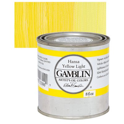 This Hansa yellow is a transparent yellow. It has great brightness and tinting strength and its drying time ranges from average to slow. Hansa Yellow makes more intense tints and cleaner secondaries than Cadmium Yellows, especially when mixed with other organic or modern colors like Phthalo Blue and Green. Because they are more transparent, they have great value as glazing colors.