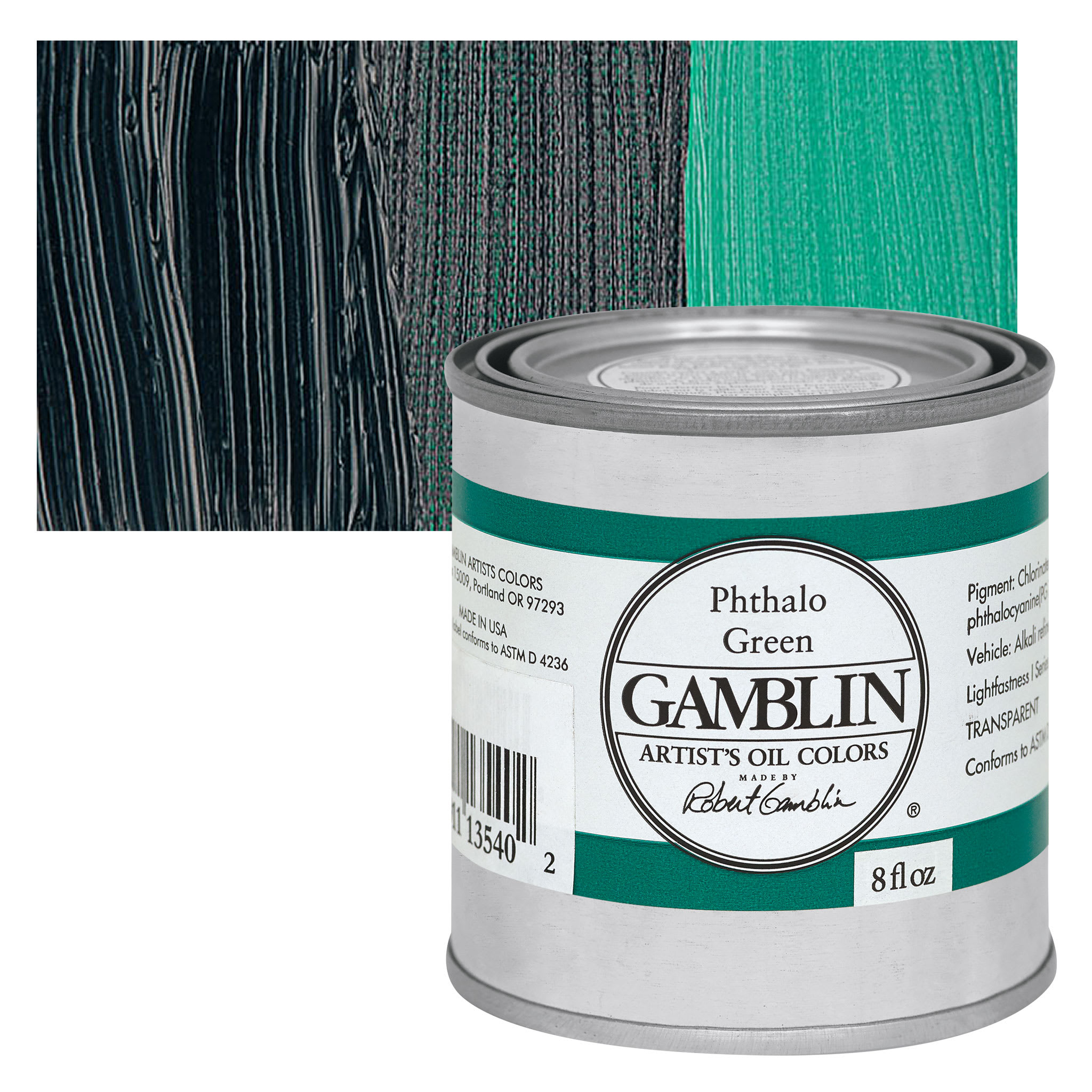 Phthalo Green is a transparent, cool, bright, high intensity color used in oil and acrylics. It comes from a Phthalocyanine Blue pigment where most of the hydrogen atoms have been replaced with chlorine, forming highly stable molecules. It has similar pigment properties and permanence to Phthalo Blue. It is slow drying and an excellent base color for mixing a range of bright greens. Phthalo Green is considered a very good alternative to Viridian because it is intense and mixes well and can be used to emphasize mineral colors in various tints. However, its tinting strength is very high, so it can overpower other colors. This pigment most closely resembles the discontinued and toxic Verdigris.