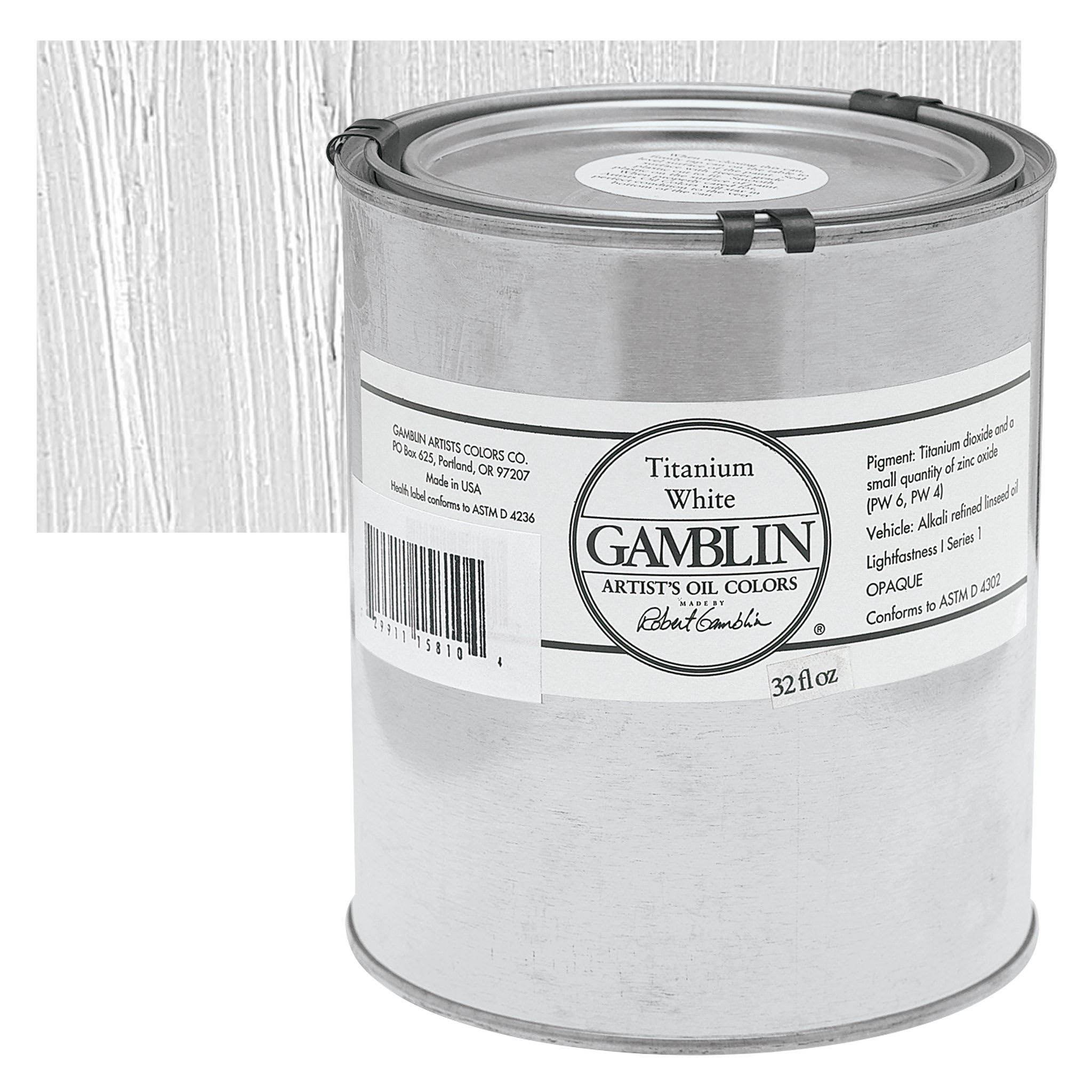 Titanium White is the most brilliant of the white pigments. It is considered an all purpose oil color useful in all techniques and the best all around white. Its masstone is neither warm nor cool, placing it somewhere between Lead White and Zinc White. It is less prone to cracking and yellowing than Lead White, but it still yellows easily. Titanium White dries slowly in oil form, more slowly than Lead White but more quickly than Zinc White. It is opaque in oil and acrylic forms and semi-opaque in watercolor form. This pigment has good chemical stability, and its tinting strength is superior to both Lead White and Zinc White.