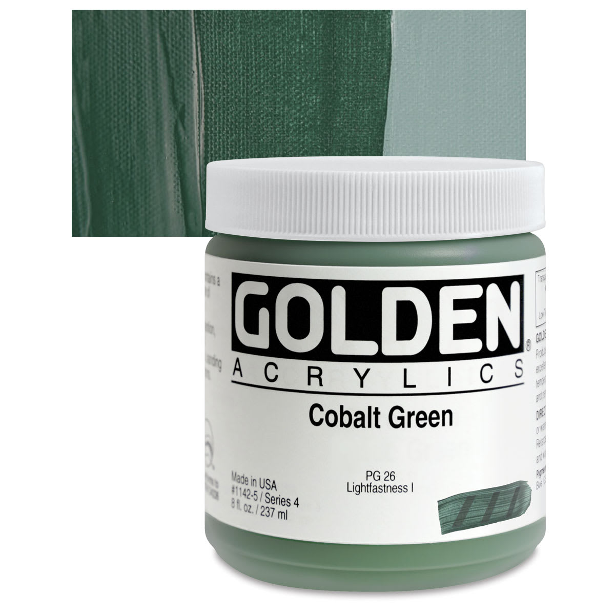 This pigment offers a deep but dull and opaque tone of Cobalt Green. It has moderate covering power, but low tinting strength. It is primarily for use on its own, or for mixing with other cobalt colors. It is an alternative to cobalt(II) zinc oxide, another form of Cobalt Green.
