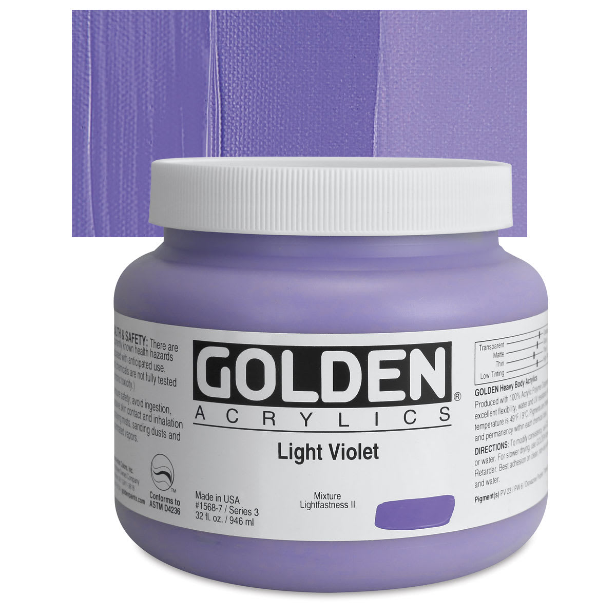 Dioxazine Violet is transparent and has very high tinting strength. It is a staining pigment, very dark valued when it is used at full strength. Concentrated, it paints out nearly black, but it mixes with Titanium White to form bright, opaque tints of purple. PV23 produces slightly redder shades than PV37. Because the hue can vary with the conditions of preparation and grinding, it may be offered in red shade, blue shade, and so forth.