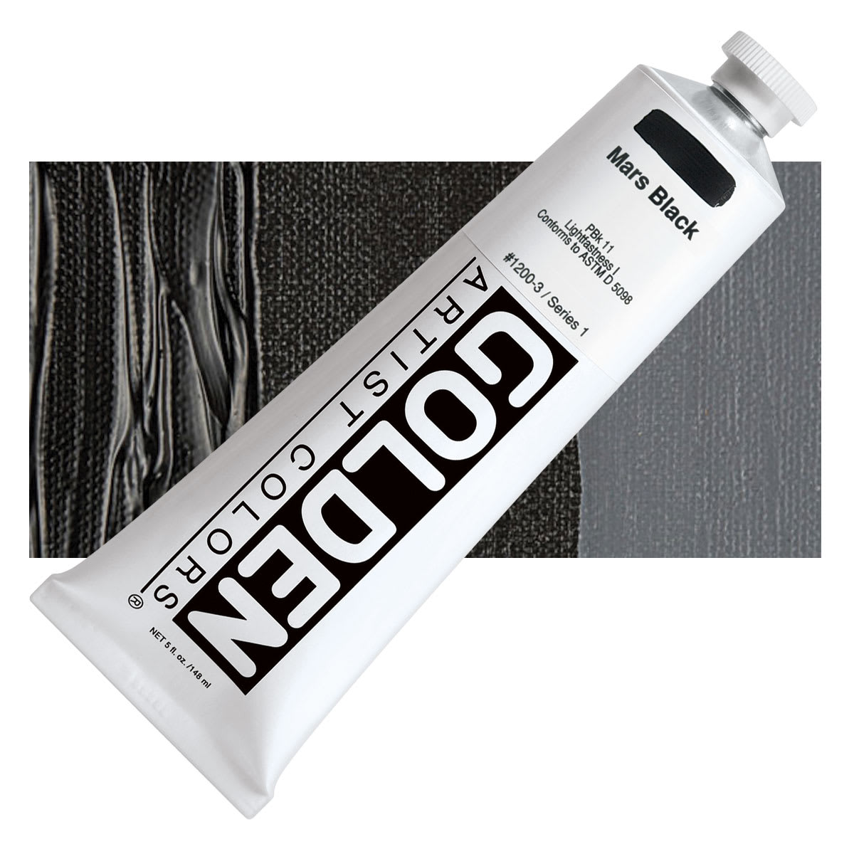 Mars Black is an opaque black with a strong and cool masstone, a slightly warm tint, and a warm brown undertone. It is not as black as Ivory Black, but it dries more quickly and has three times the tinting strength. Mars Black is normally the only black available in acrylic form and that is safe to over paint. It can be used in all media without reservation and is widely used as an alternative to Lamp Black and Ivory Black.
