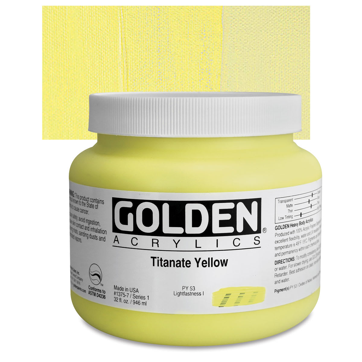 Nickel Titanium Yellow is one of the cleanest and brightest of the inorganic pigments. It has a low tinting strength and average to slow drying time.